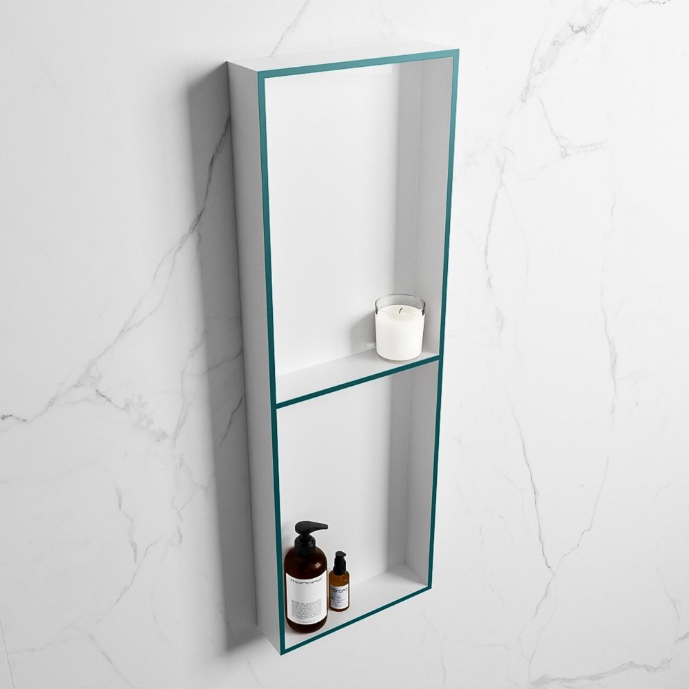Deze nis is vervaardigd uit solid surface materiaal, een duurzaam en slijtagebestendig materiaal dat jarenlang meegaat. Dit materiaal is niet alleen sterk, maar ook gemakkelijk schoon te maken en te onderhouden, waardoor het een ideale keuze is voor gebruik in de badkamer.