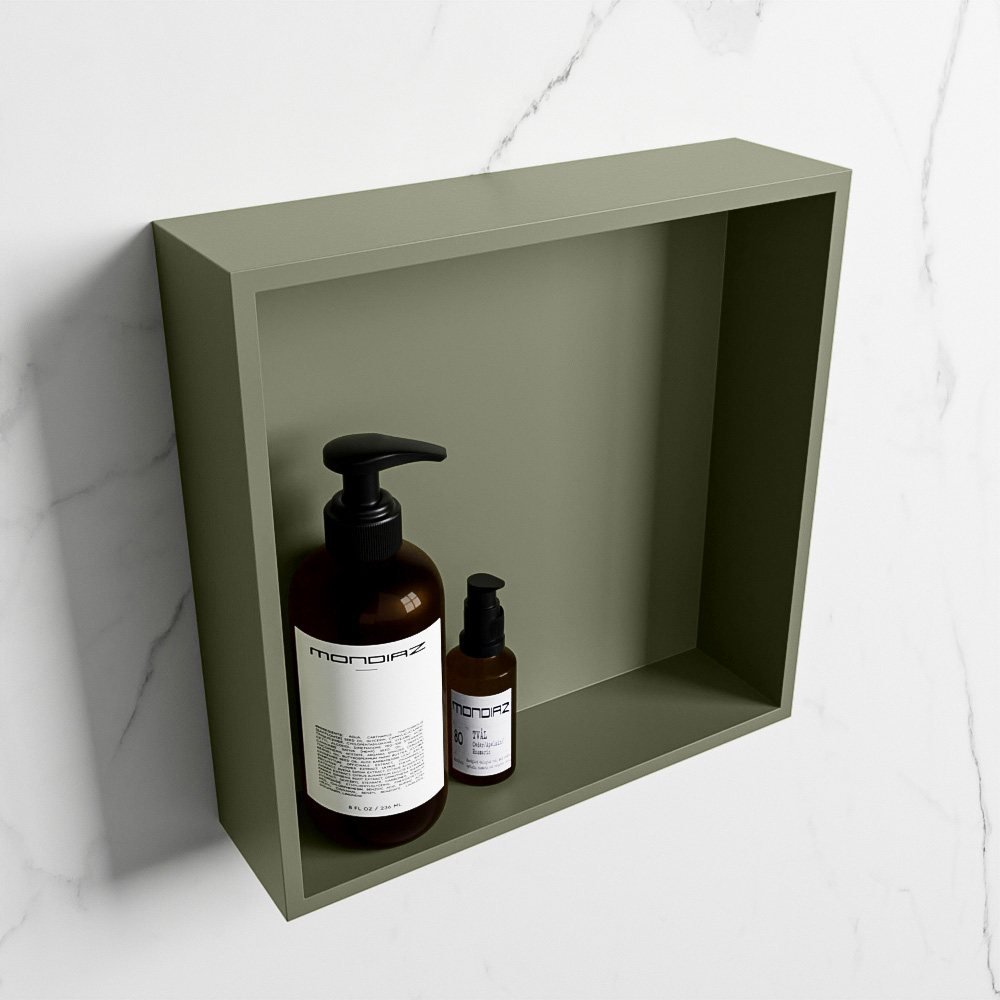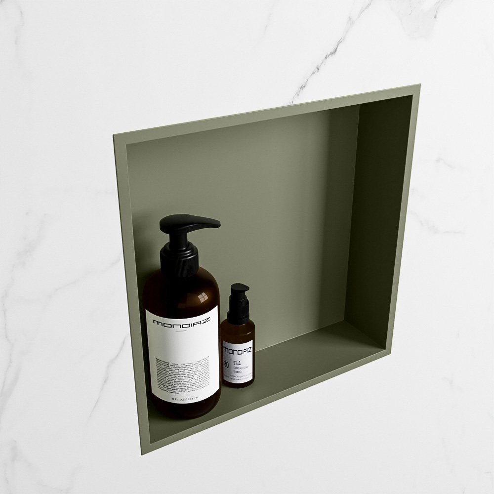 De nis is gemaakt van solid surface, een duurzaam en onderhoudsvriendelijk materiaal dat bekend staat om zijn strakke uitstraling. Bovendien zorgt de unieke army (groen) kleur voor een aardse en rustgevende sfeer in uw badkamer.