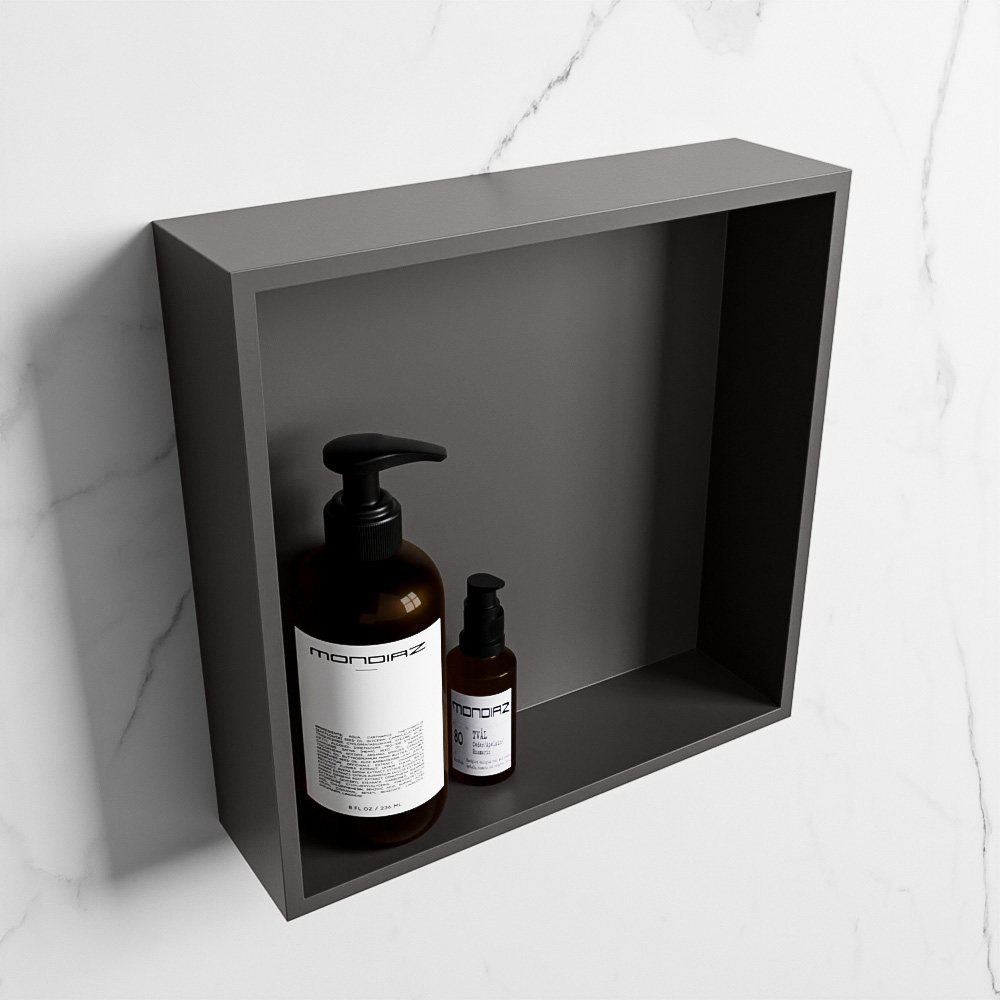 De donkergrijze afwerking van de Mondiaz EASY Nis geeft uw badkamer een moderne en stijlvolle uitstraling. Het product is ontworpen met een formaat van 29.5×29.5cm, waardoor het gemakkelijk in elke badkamer past. Met de mogelijkheid voor zowel in- als opbouw, biedt het product veelzijdige montageopties om aan uw specifieke behoeften te voldoen.