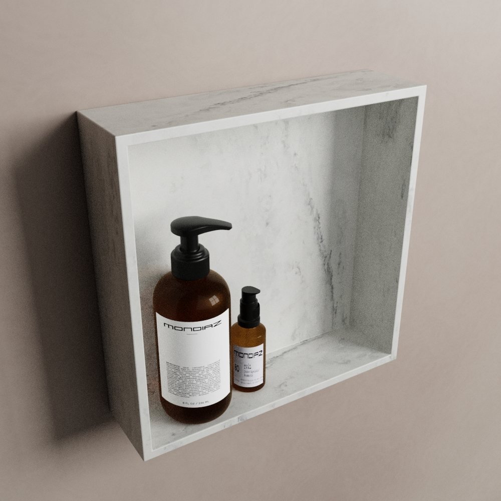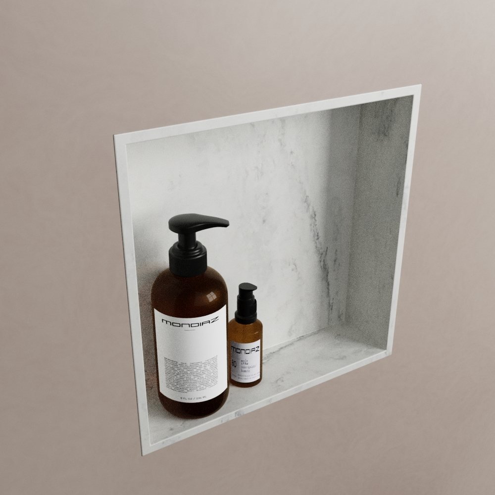 Met zijn stijlvolle grijs marmerlook, past deze nis naadloos in elke badkamerstijl. Het biedt niet alleen een esthetisch element aan uw badkamer, maar ook een praktische opslagruimte. Het enkel vak is ruim genoeg om uw essentiële badkamerartikelen binnen handbereik te houden.