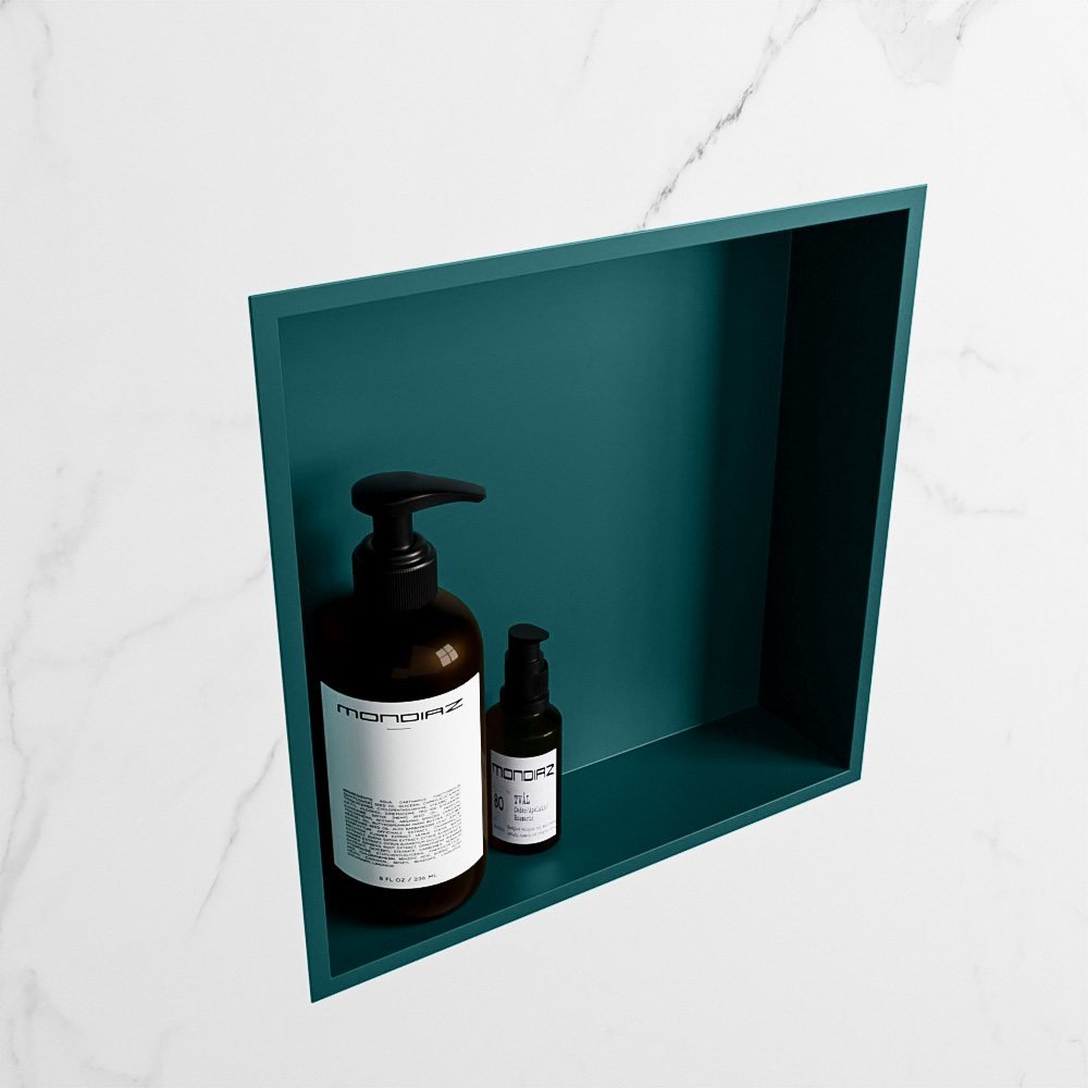 Gemaakt van solid surface materiaal, deze nis is niet alleen sterk en duurzaam, maar heeft ook een gladde, niet-poreuze afwerking die zeer bestand is tegen hitte, vlekken en krassen. De unieke jade groene kleur voegt een modern en verfrissend tintje toe aan uw badkamerinterieur, waardoor het een echte blikvanger wordt.