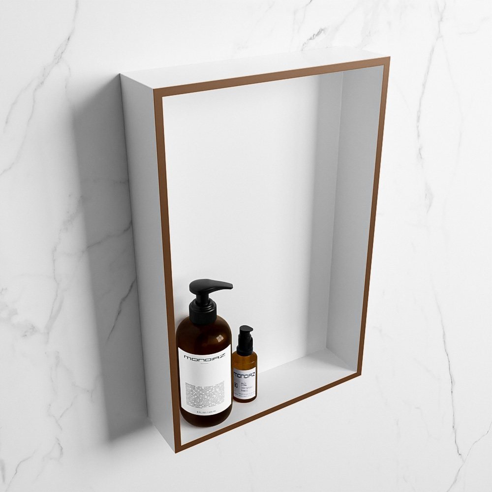 Maar het is niet alleen de kwaliteit van het materiaal dat opvalt. De EASY Nis is ook een echte blikvanger. Beschikbaar in een rust (bruin tint) en talc (mat wit) kleurencombinatie, zal deze nis zeker een stijlvolle touch aan uw badkamer geven.