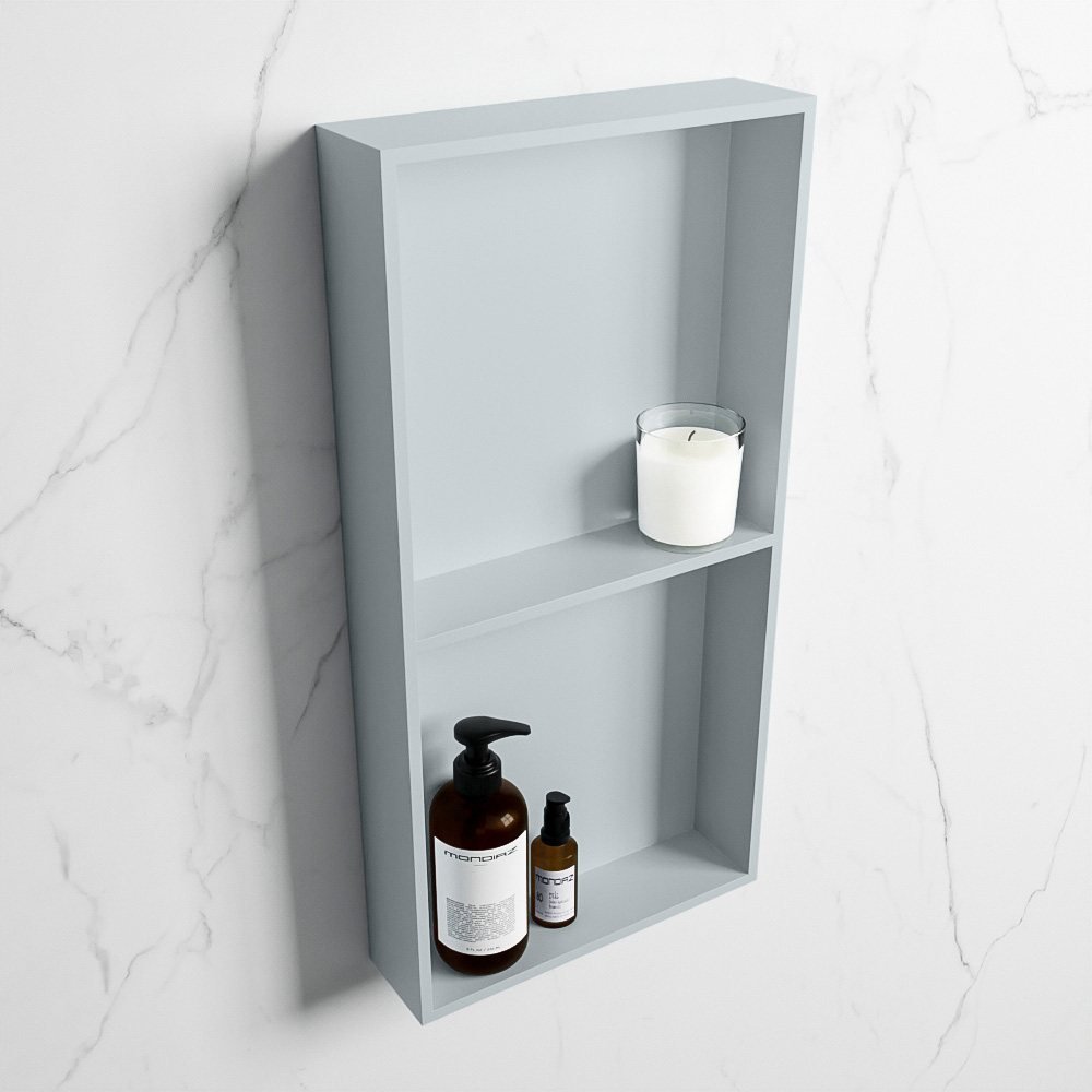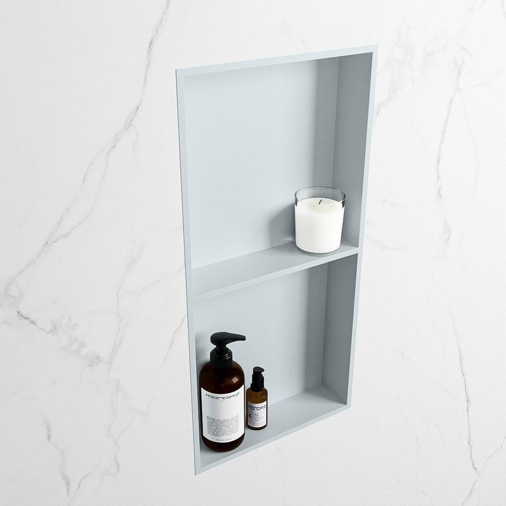 Dankzij de solid surface constructie biedt de Mondiaz EASY Nis een strakke en moderne uitstraling. Dit geavanceerde materiaal staat bekend om zijn duurzaamheid en weerstand tegen slijtage. Bovendien is het gemakkelijk schoon te maken en te onderhouden. De nis is afgewerkt in een subtiele grijze kleur, waardoor hij naadloos in elke badkamerstijl past.