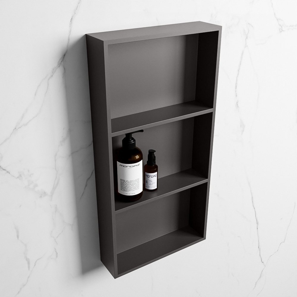 Mondiaz EASY Nis – 59.5×29.5cm – solid surface – darkgrey (donker grijs) / darkgrey (donker grijs) – 3 vakken – in/opbouw – M80035DarkGrey/DarkGrey