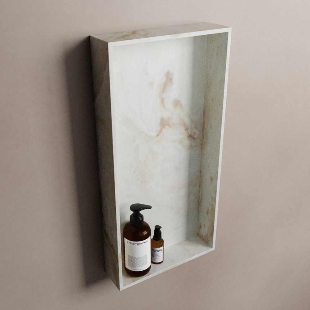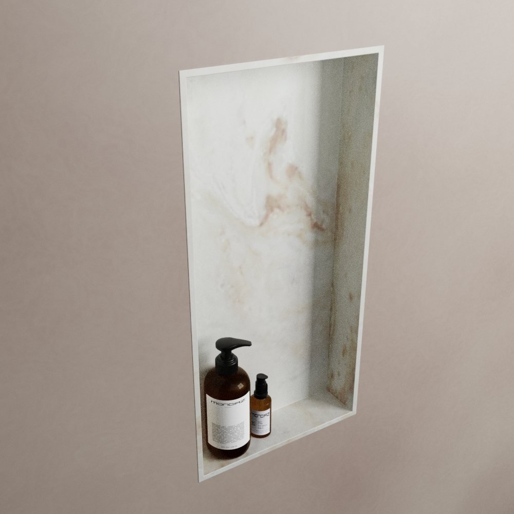 Gemaakt van hoogwaardig solid surface materiaal, staat deze nis garant voor duurzaamheid. Waterbestendig en bestand tegen slijtage, het is perfect geschikt voor de uitdagingen van dagelijks gebruik. Maar de EASY Nis van Mondiaz is niet alleen praktisch, het is ook een genot voor het oog. De crème marmerlook straalt een subtiele luxe uit, waardoor uw ruimte een vleugje elegantie krijgt.