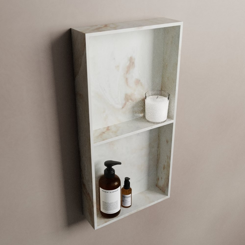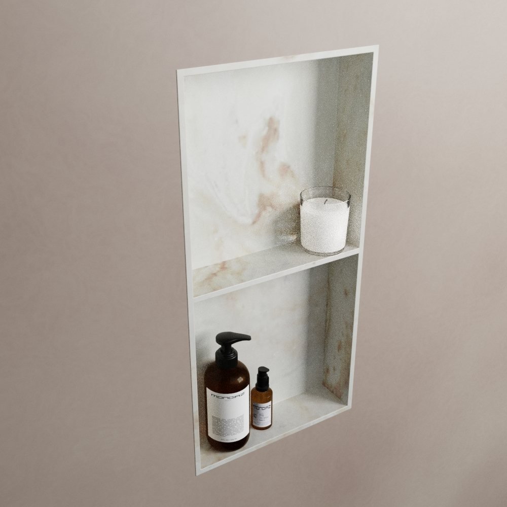 Transformeer uw badkamer met de Mondiaz EASY Nis. Deze nis is niet alleen praktisch, maar ook een stijlvolle aanvulling voor uw badkamer. Met zijn crème marmerlook en solid surface materiaal, brengt deze nis een luxe uitstraling naar uw badkamer.