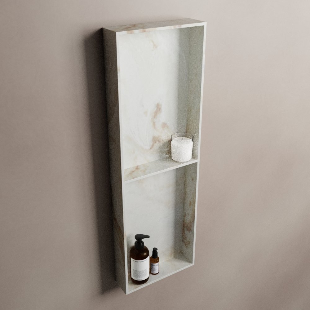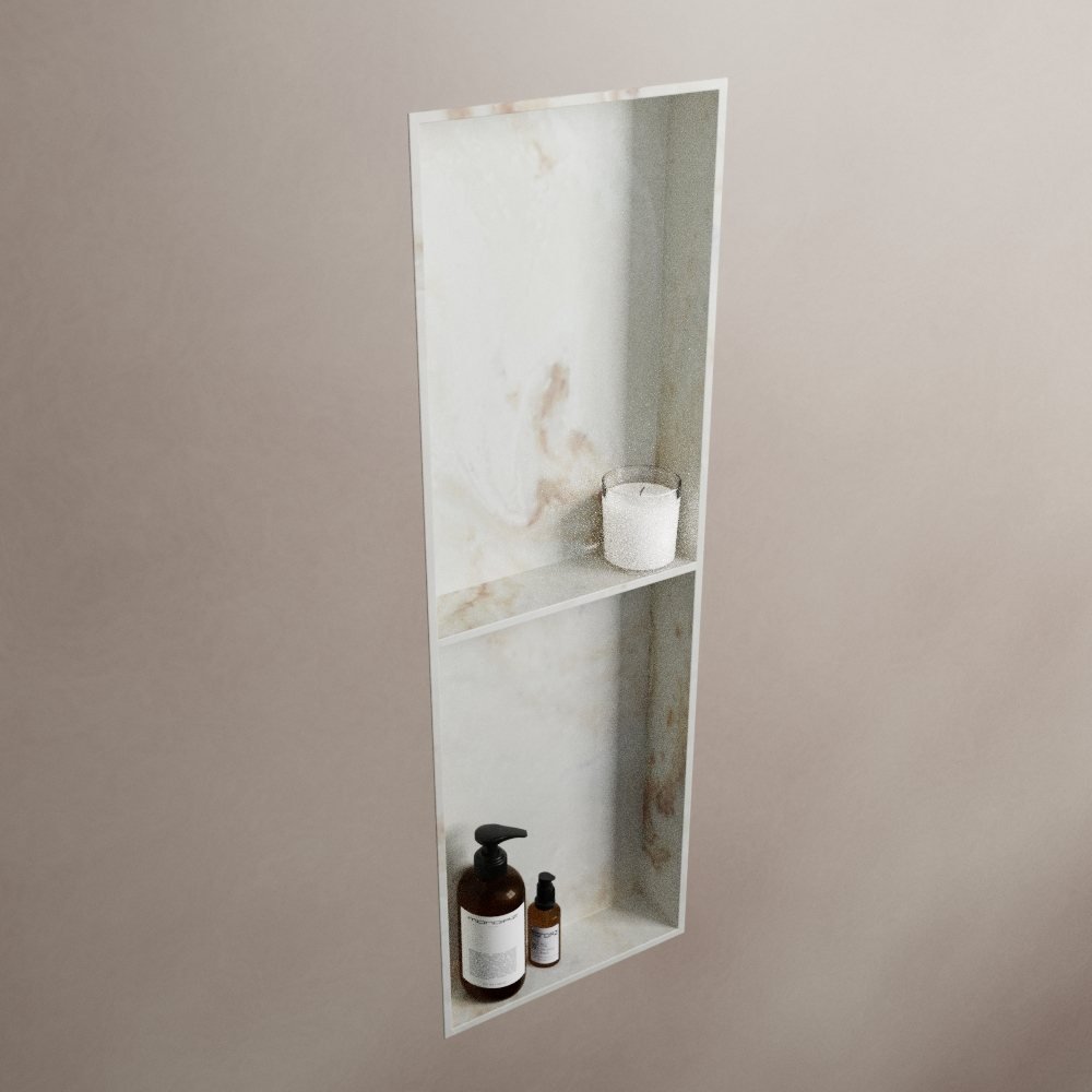 De crème marmerlook van deze nis geeft elke badkamer een luxe uitstraling. De subtiele kleur en het unieke patroon van de nis zorgen ervoor dat hij in vrijwel elke badkamerstijl past. Of je nu een minimalistische, moderne of klassieke badkamer hebt, deze nis zal een prachtige aanvulling zijn.