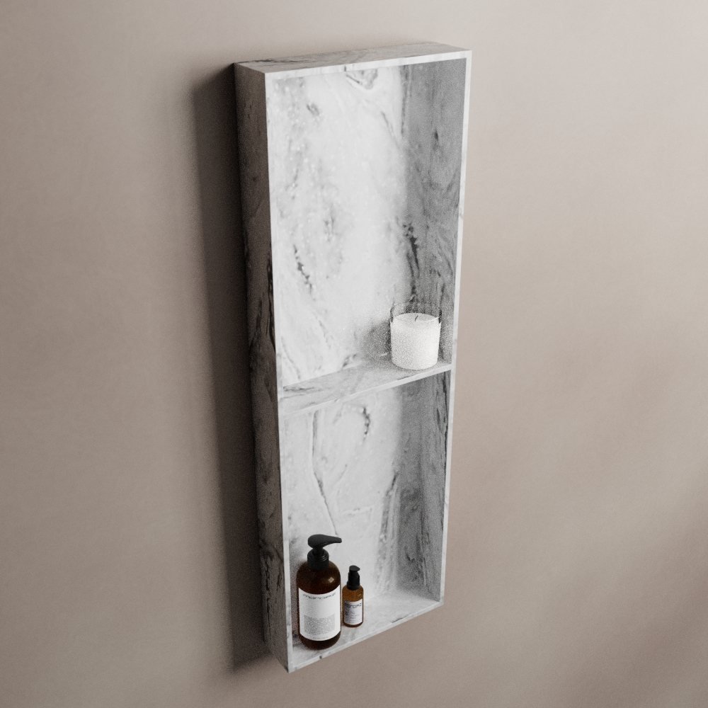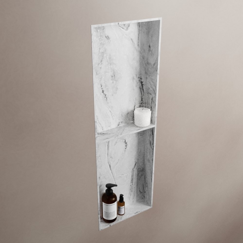 De nis heeft drie vakken, wat zorgt voor voldoende opbergruimte voor al uw badkamerspullen. Of u nu uw shampoo en conditioners, zeep of andere toiletartikelen wilt opbergen, deze nis biedt voldoende ruimte.