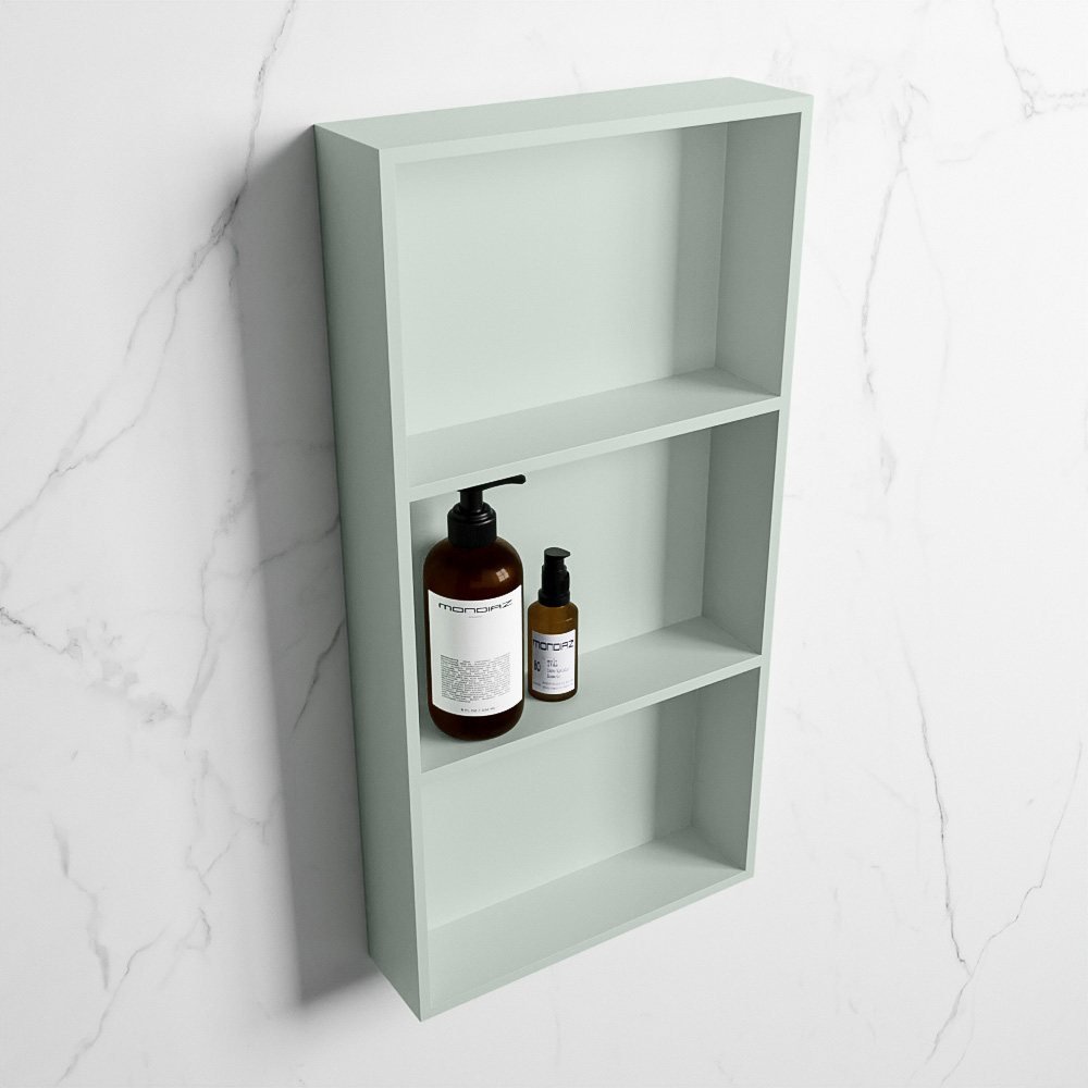 Mondiaz EASY Nis – 59.5×29.5cm – solid surface – greey (licht pastel groen) / greey (licht pastel groen) – 3 vakken – in/opbouw – M80035Greey/Greey