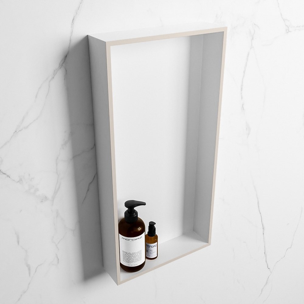 - Met zijn formaat van 59.5×29.5cm biedt de nis voldoende opslagruimte zonder veel ruimte in beslag te nemen.