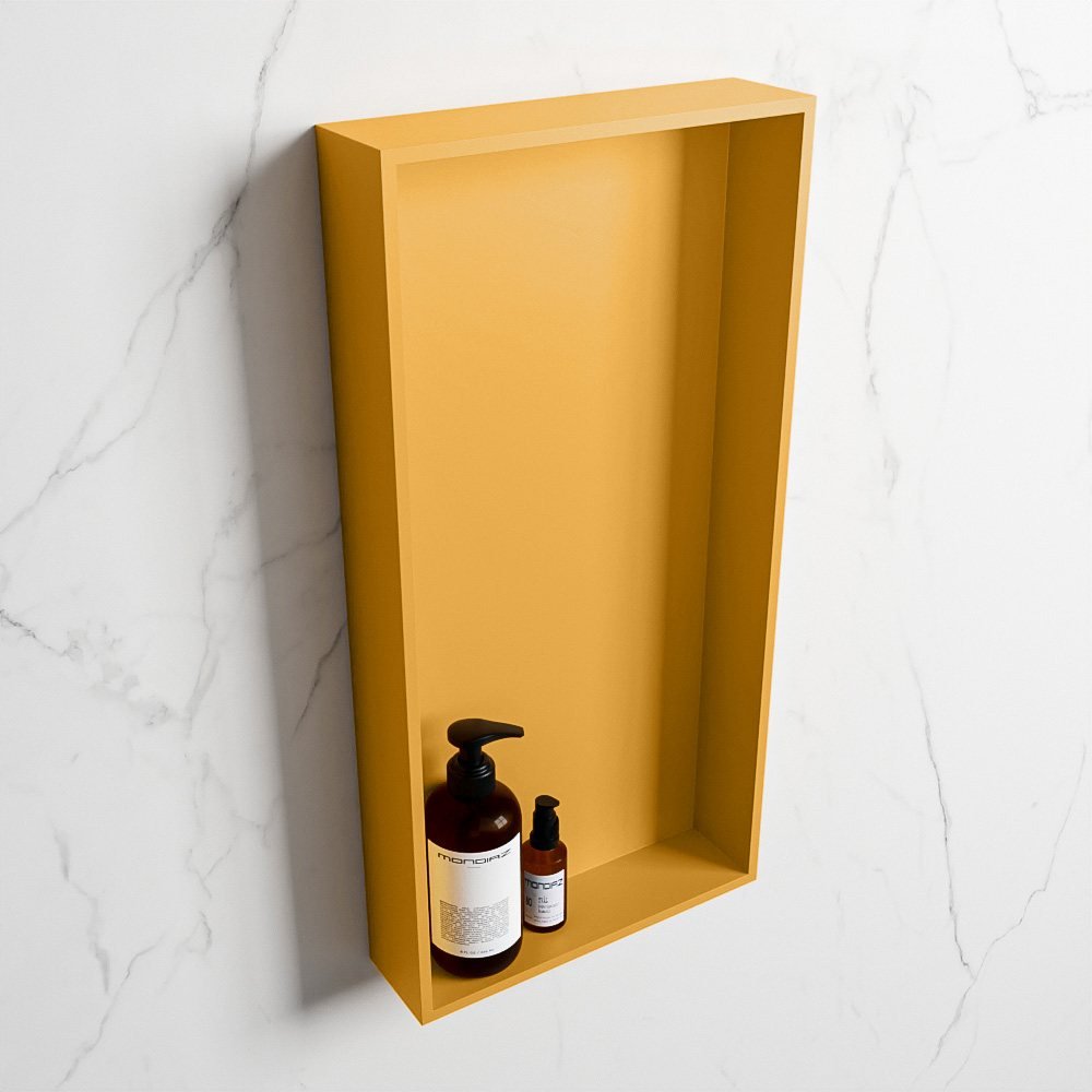 Transformeer uw badkamer met de Mondiaz EASY Nis. Deze stijlvolle nis, met zijn opvallende ocher (geel) kleur, is een prachtige toevoeging aan elke badkamer. Het voegt niet alleen een vleugje moderne esthetiek toe, maar biedt ook praktische opbergruimte.