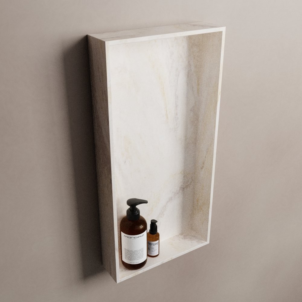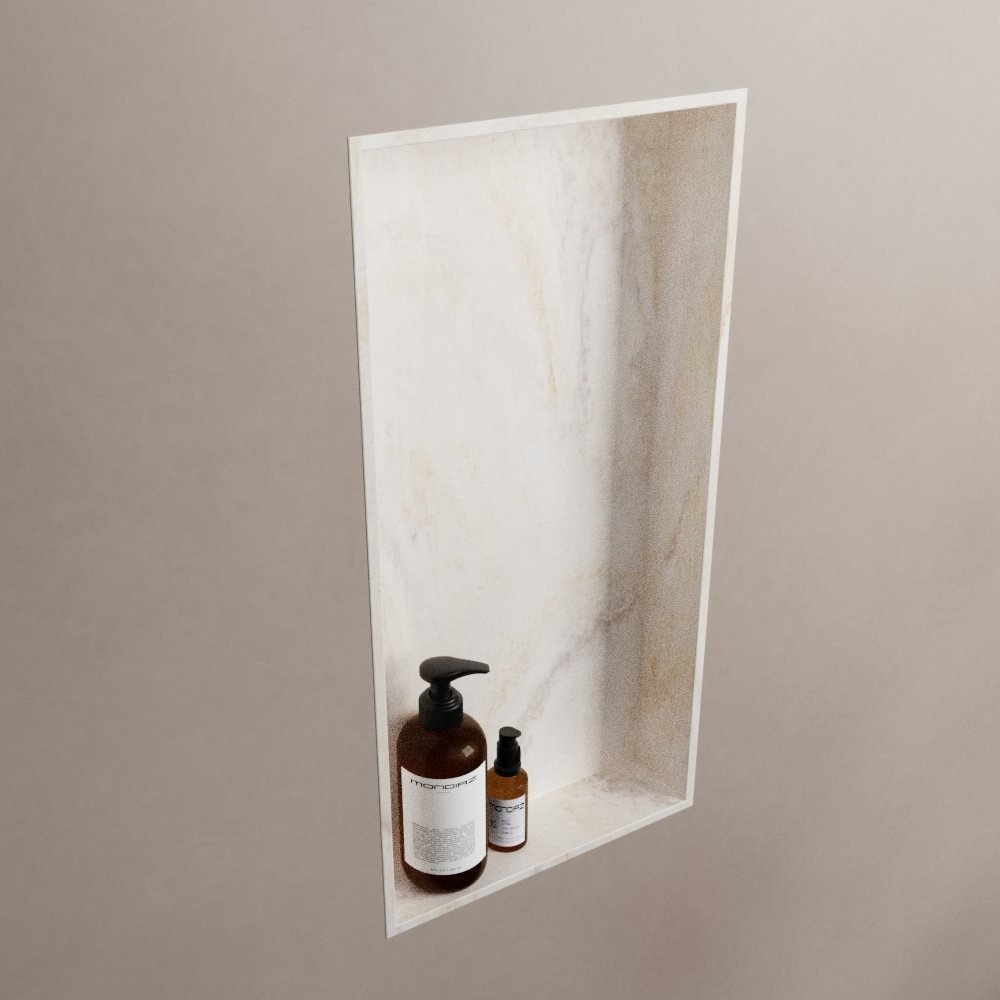 Dankzij de veelzijdige in- en opbouwmogelijkheden van de EASY Nis, kunt u deze nis perfect integreren in uw bestaande badkamerdesign. De afmetingen van 59.5×29.5cm bieden voldoende ruimte voor al uw badkamertoiletartikelen, zonder dat de nis zelf te veel ruimte in beslag neemt.