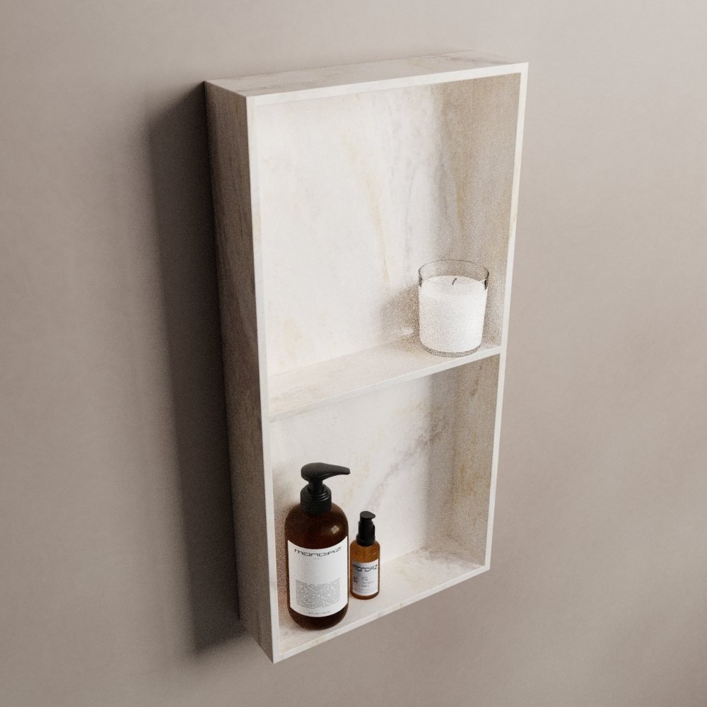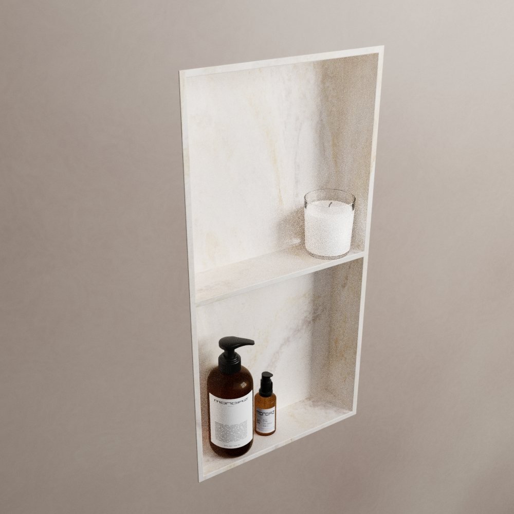 De Mondiaz EASY Nis is niet alleen functioneel, maar ook een echte blikvanger. De stijlvolle ostra kleur, een subtiele grijstint, geeft je badkamer een moderne en tijdloze uitstraling. Het solid surface materiaal heeft een luxe uitstraling en is tegelijkertijd zeer onderhoudsvriendelijk. Zo blijft je nis er altijd op zijn best uitzien.