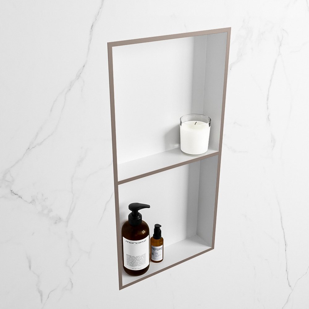 Transformeer uw badkamer met de Mondiaz EASY Nis. Deze prachtige nis is ontworpen om uw badkamer niet alleen mooier te maken, maar ook functioneler. Gemaakt van hoogwaardig solid surface, staat deze nis garant voor duurzaamheid en langdurige schoonheid.