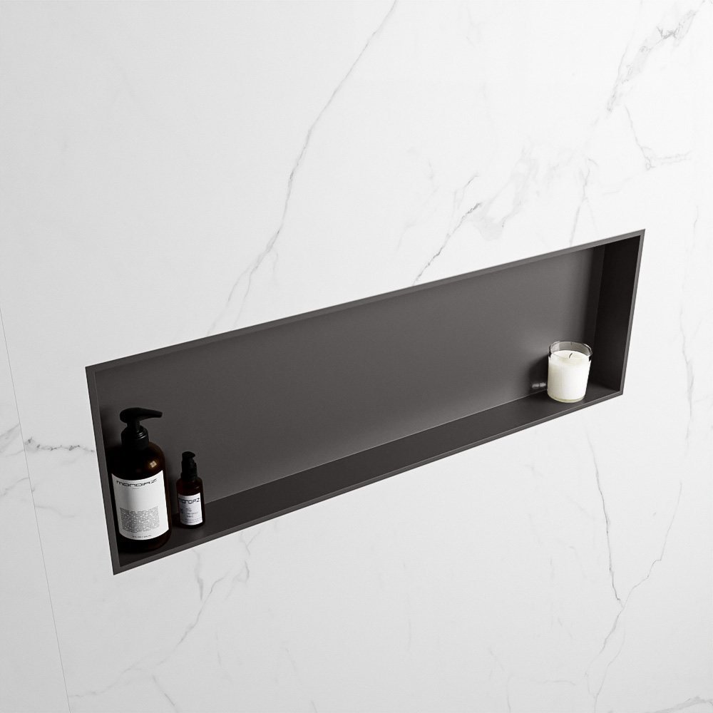 De Mondiaz EASY Nis is niet alleen functioneel, maar ook esthetisch aantrekkelijk. De nis heeft een donkergrijze kleur, die een moderne en stijlvolle uitstraling geeft aan uw badkamer. Bovendien is deze nis ontworpen voor zowel inbouw als opbouw, wat zorgt voor veelzijdigheid in montage en inrichting. Of u nu een grote badkamer heeft of een compacte, deze nis zal naadloos in uw ruimte passen.