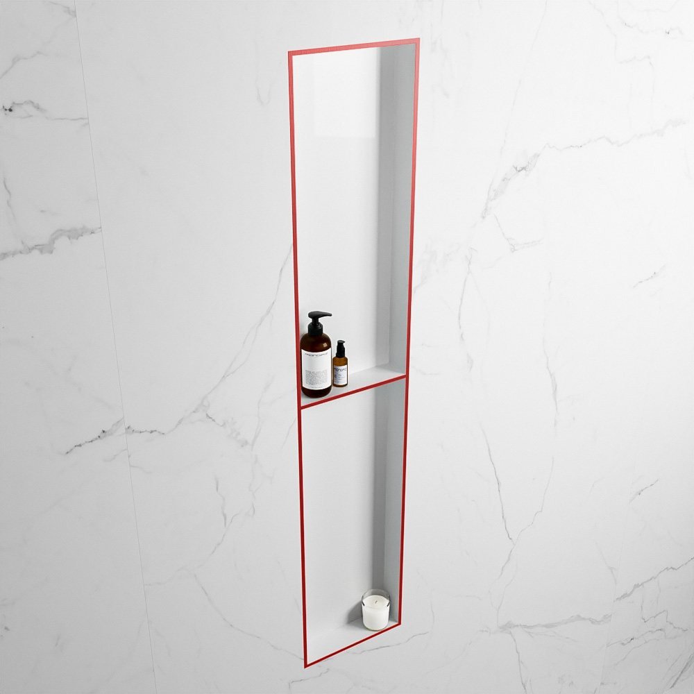 Voeg een vleugje stijl en functionaliteit toe aan uw badkamer met de Mondiaz EASY Nis. Deze prachtige nis, met zijn opvallende combinatie van vuurrood en mat wit, verandert uw badkamer in een oase van rust en elegantie.