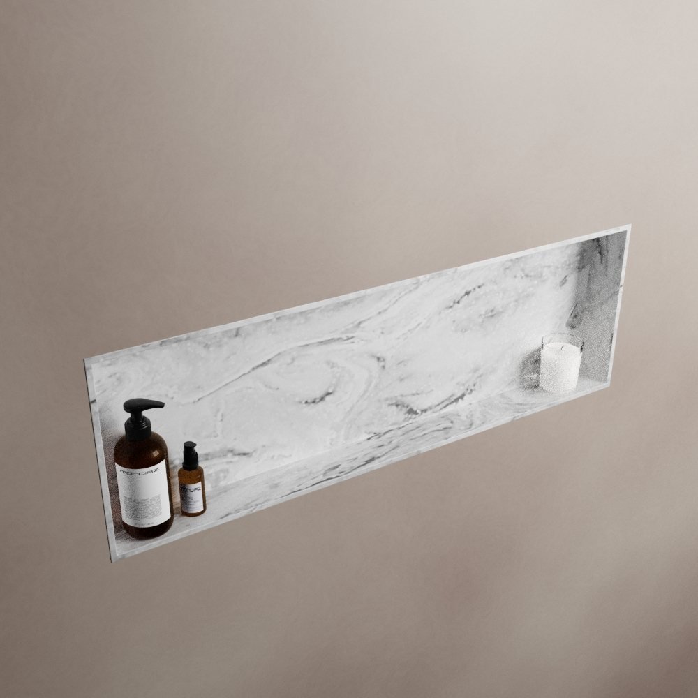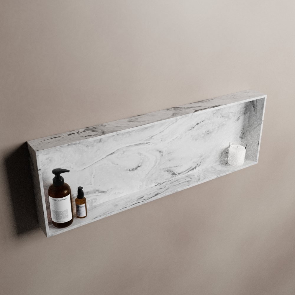 Gemaakt van solid surface, een materiaal bekend om zijn duurzaamheid en weerstand tegen slijtage, deze nis is gebouwd om lang mee te gaan. Het is bestand tegen vlekken, krassen en schimmel, waardoor het perfect is voor de vochtige omgeving van de badkamer. Bovendien is solid surface eenvoudig schoon te maken, waardoor het onderhoud een fluitje van een cent is.