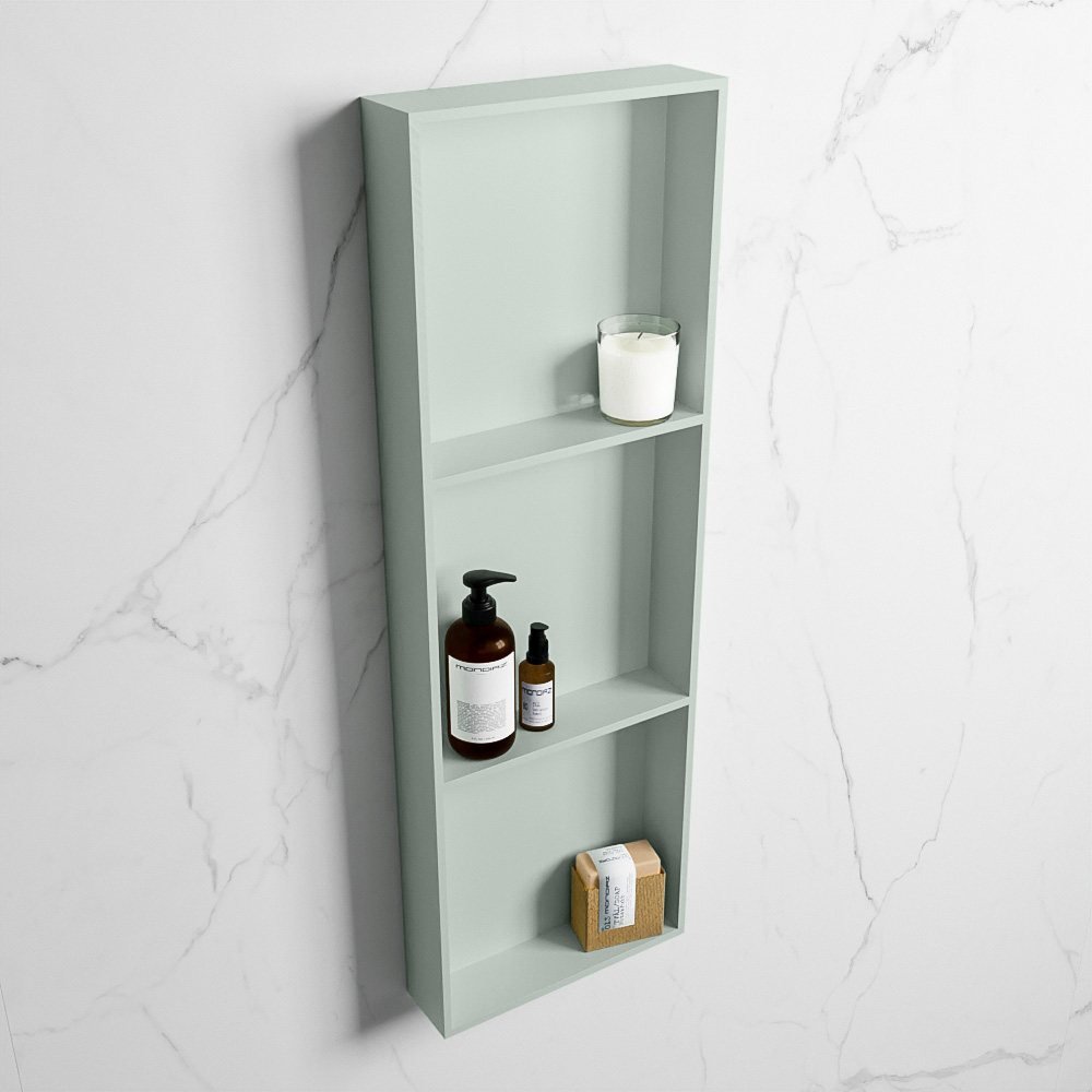 - Met zijn licht pastel groene kleur voegt deze nis een stijlvolle toets toe aan uw badkamer