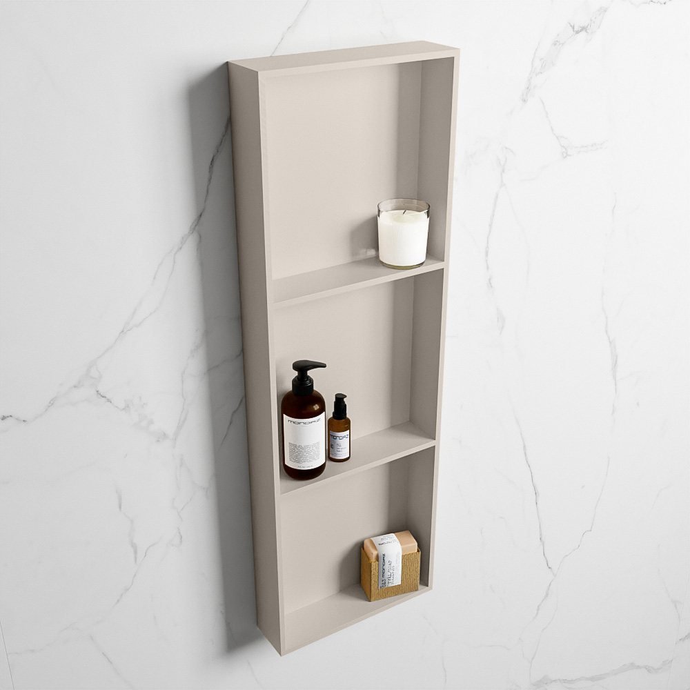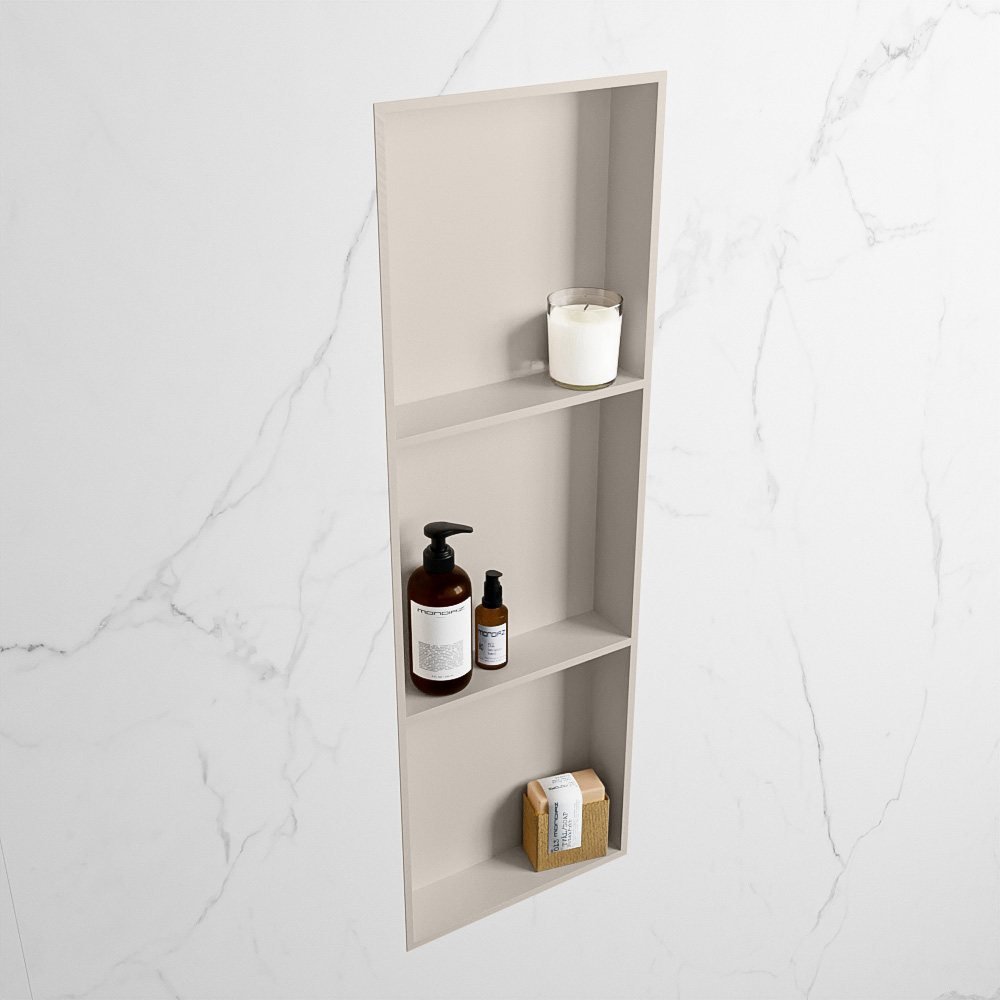 Mondiaz EASY Nis – 89.5×29.5cm – solid surface – linen (off white tint) / linen (off white tint) – 3 vakken – in/opbouw – M80044Linen/Linen