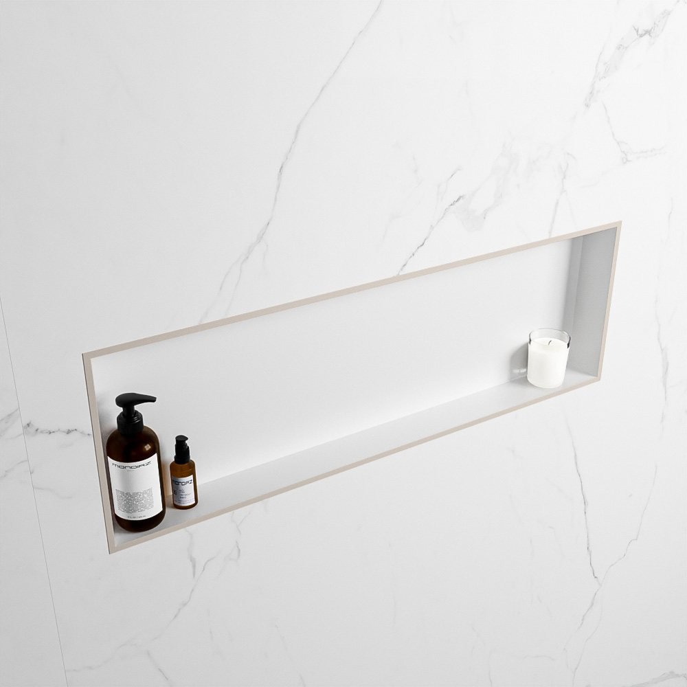 Mondiaz EASY Nis – 89.5×29.5cm – solid surface – linen (off white tint) / talc (mat wit) – 1 vak – in/opbouw – M80023Linen/Talc