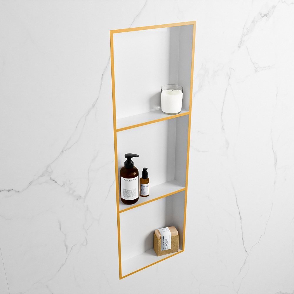 Mondiaz EASY Nis – 89.5×29.5cm – solid surface – ocher (geel) / talc (mat wit) – 3 vakken – in/opbouw – M80044Ocher/Talc