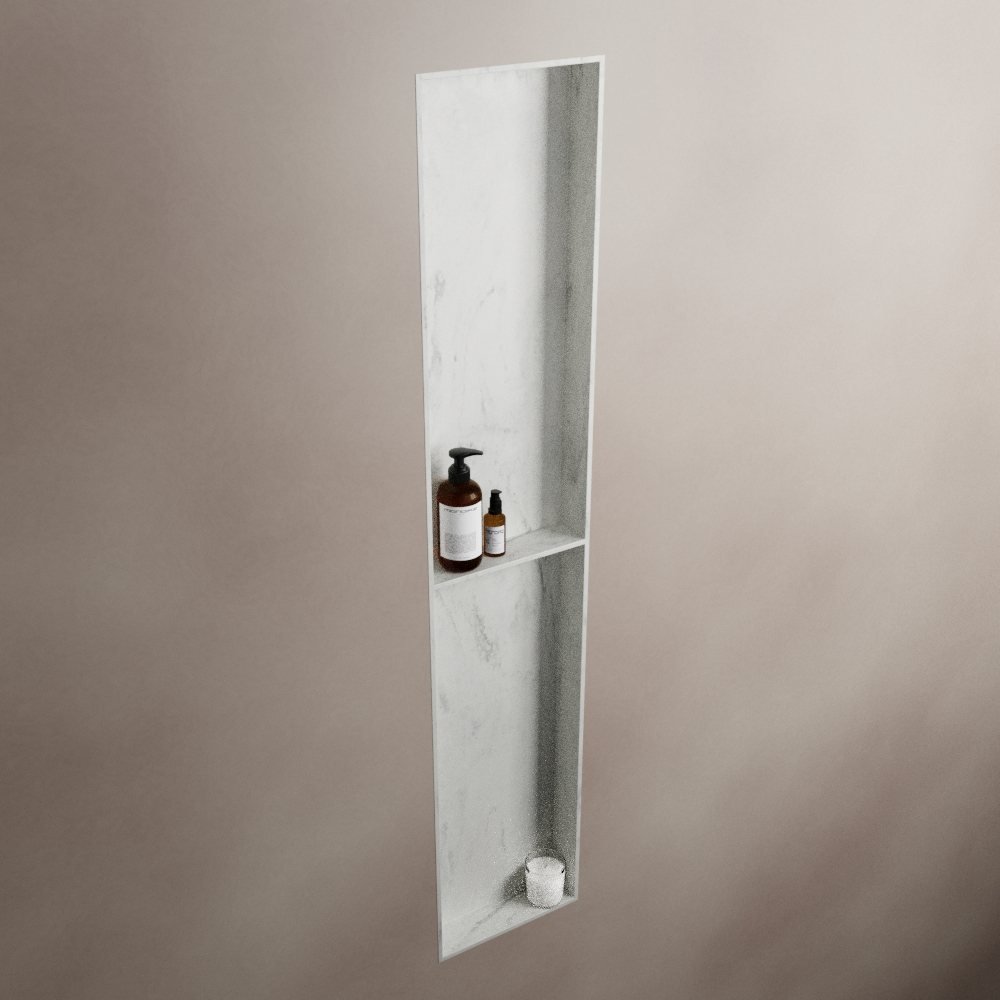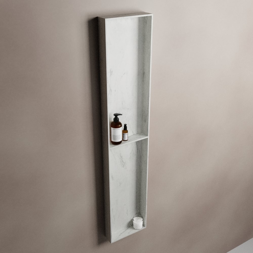 Creëer een geraffineerde, georganiseerde badkamer met de Mondiaz EASY Nis. Deze nis, vervaardigd uit het duurzame solid surface materiaal, is ontworpen om een luxe touch toe te voegen aan uw badkamer. Met een grijs marmeren look voegt het een vleugje elegantie toe aan elk interieur.