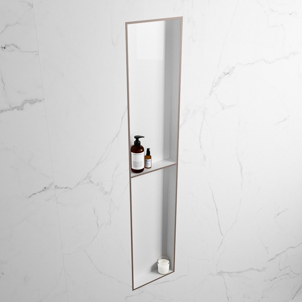 De nis is gemaakt van solid surface, een materiaal dat bekend staat om zijn duurzaamheid en onderhoudsgemak. Het is bestand tegen slijtage, waardoor het er jarenlang als nieuw uit blijft zien. Bovendien geeft het een strakke, moderne uitstraling aan uw badkamer.