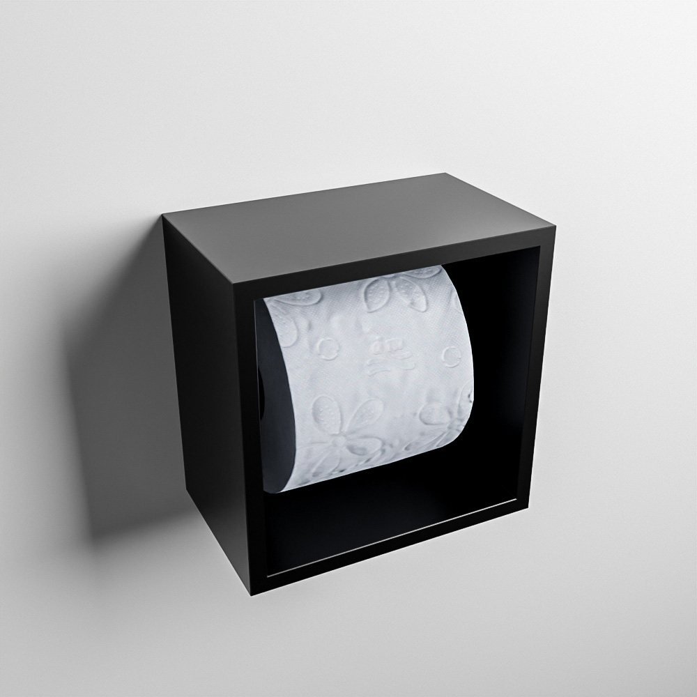 Mondiaz Easy Toiletrolhouder CUBE – solid surface – 16x16cm – urban (mat zwart) – op/inbouw – M80110UB