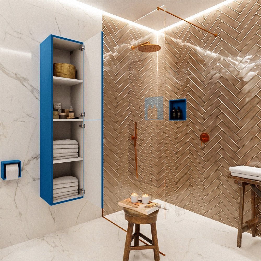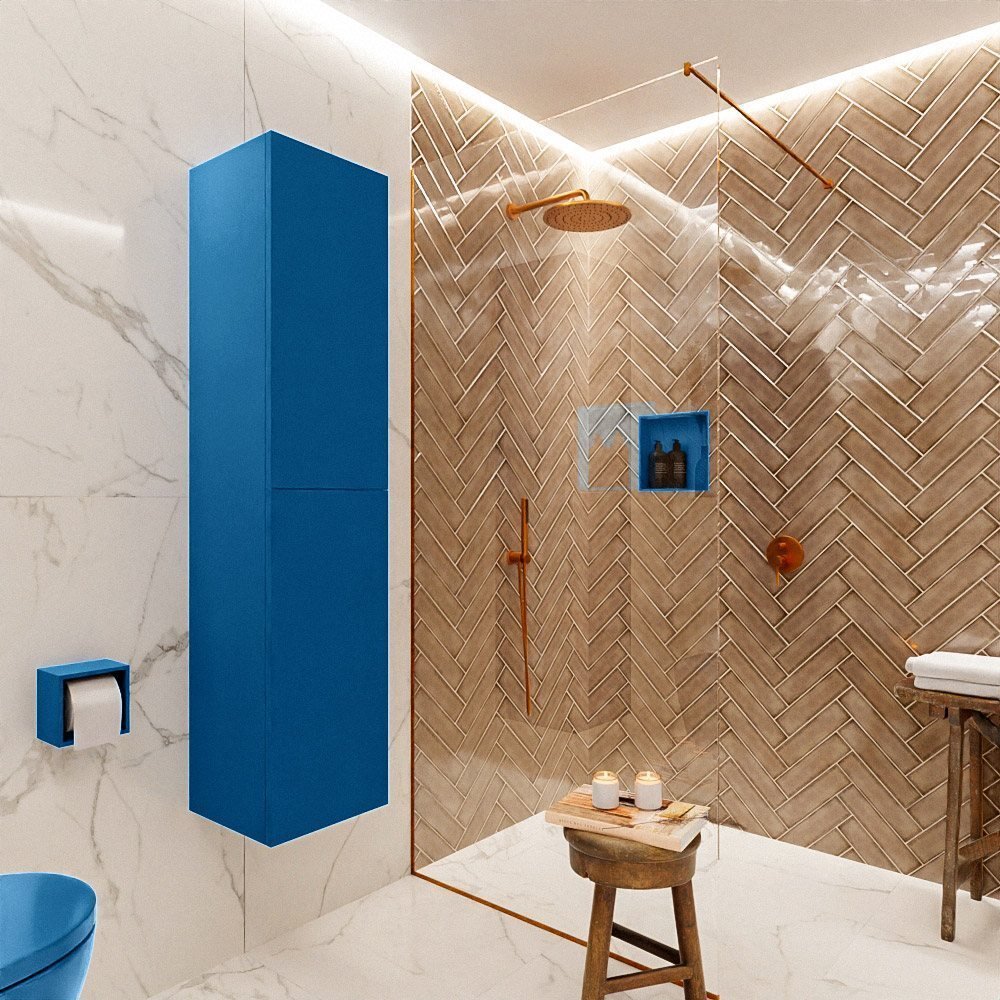 Wat deze kolomkast echt onderscheidt, is de unieke jeansblauwe afwerking. Deze opvallende kleur geeft de kast een frisse, moderne uitstraling die een opvallend accent in uw badkamer zal zijn. Of u nu een volledige renovatie plant of gewoon een vleugje kleur wilt toevoegen, de Mondiaz Kolomkast Beam is een keuze die u niet zal teleurstellen.