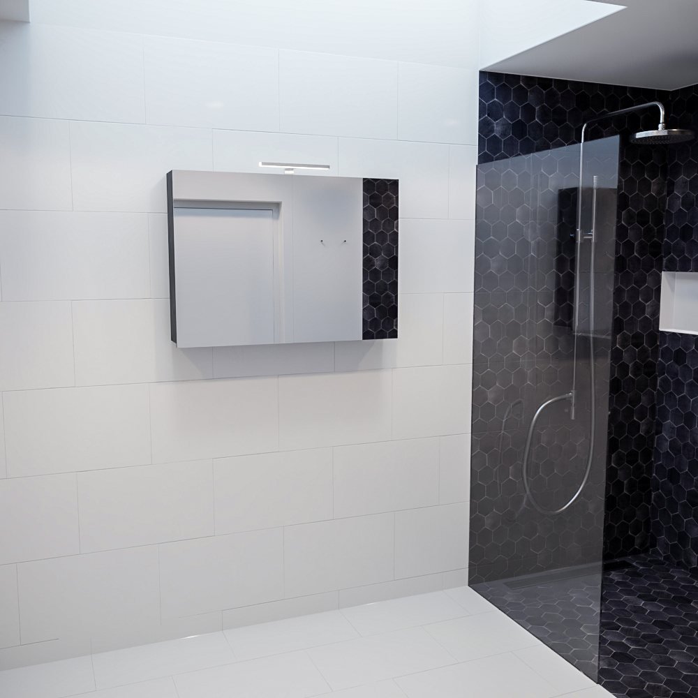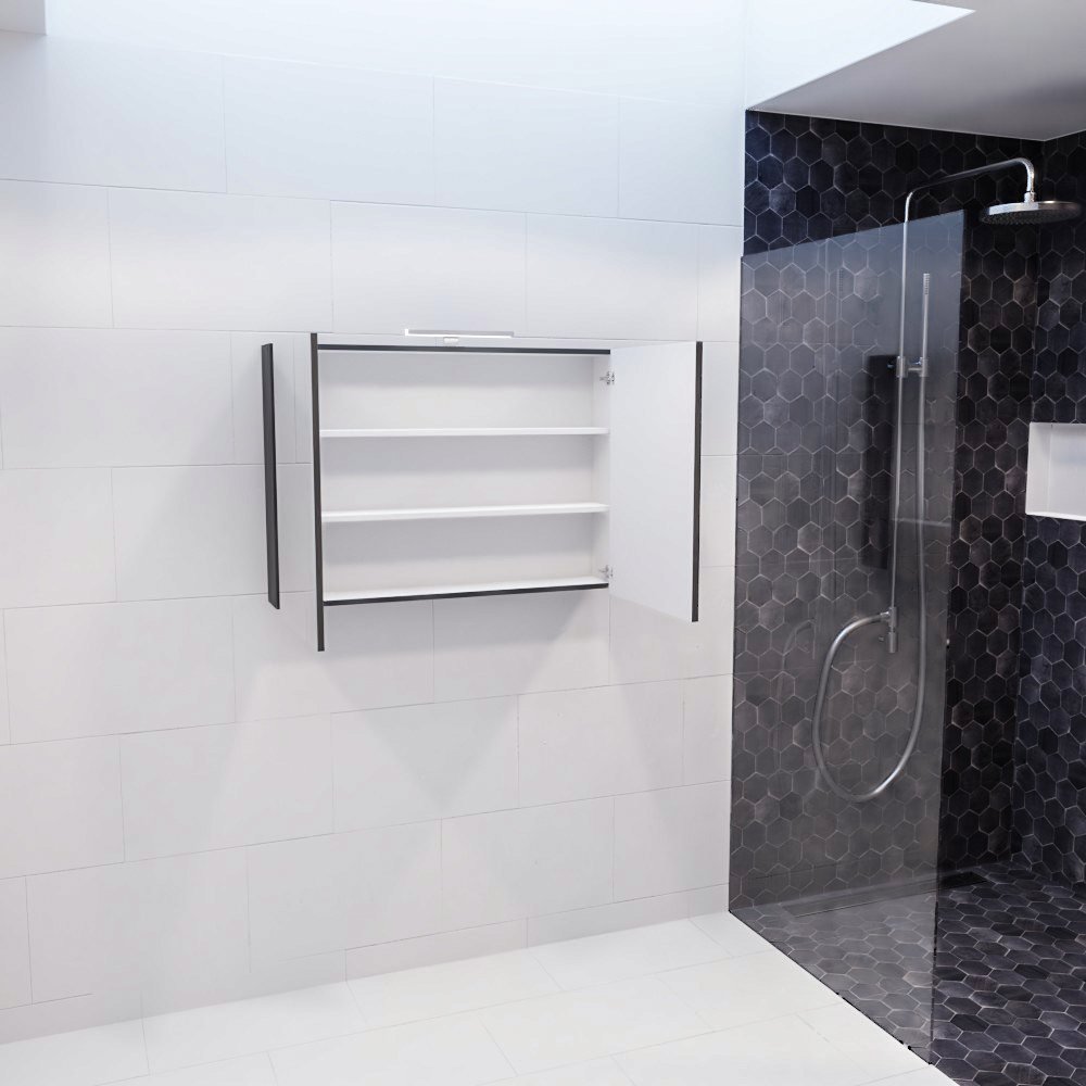 Met een breedte van 100cm, biedt deze spiegelkast voldoende ruimte om al uw toiletartikelen en badkamervereisten op een georganiseerde manier op te bergen. De donkere grijze kleur voegt een verfijnd en modern element toe, waardoor uw badkamer een stijlvolle uitstraling krijgt.