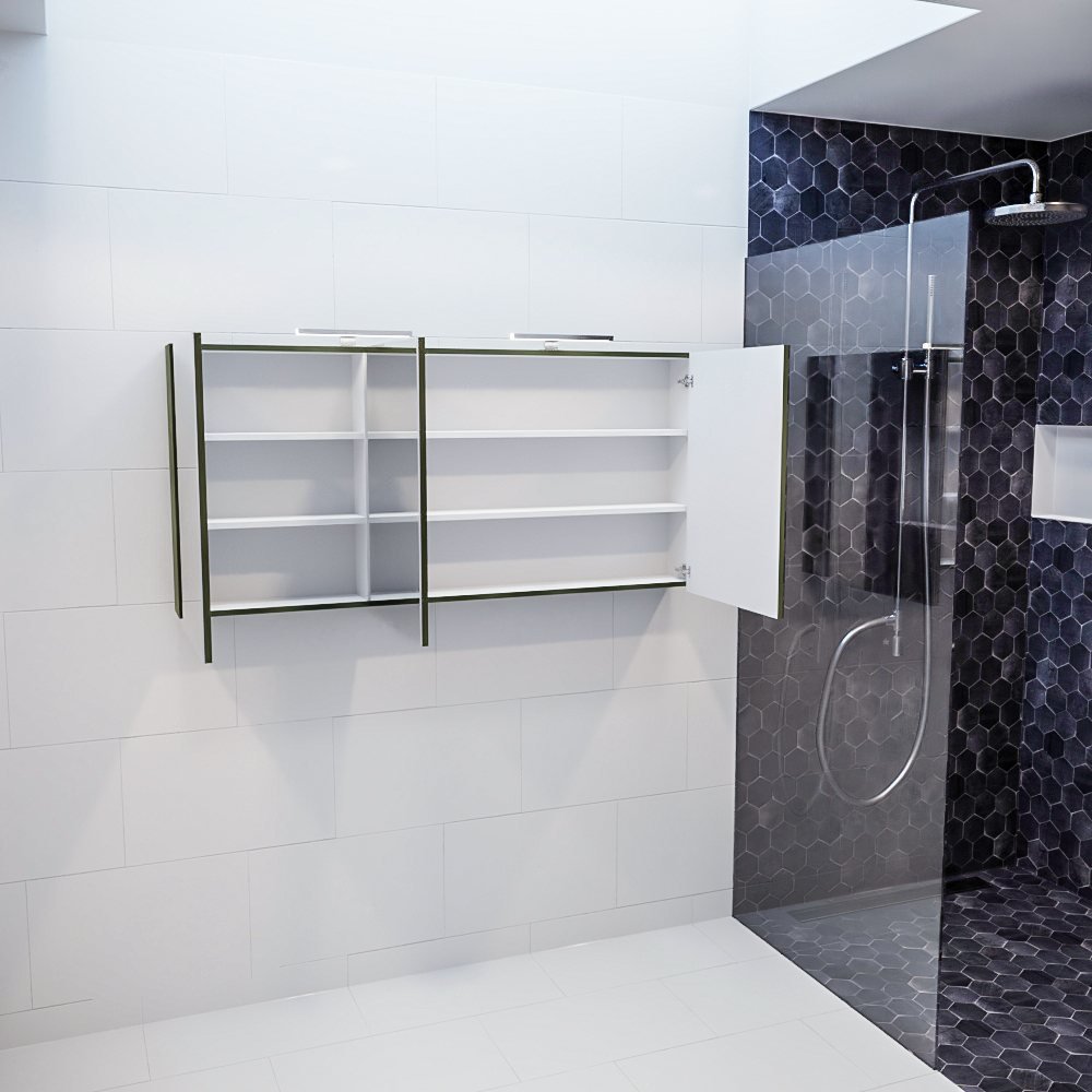 Met zijn royale breedte van 150cm en zijn unieke army groene kleur, zal de Mondiaz Spiegelkast Cubb zeker indruk maken. Maar deze kast is niet alleen aantrekkelijk om naar te kijken. Het is ook ontworpen met het oog op functionaliteit. De ruime planken en het gestroomlijnde ontwerp zorgen ervoor dat je al je toiletartikelen gemakkelijk kunt opbergen en vinden.