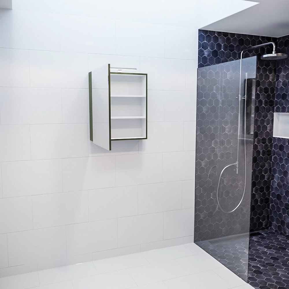 Gemaakt van hoogwaardig materiaal, belooft deze spiegelkast een lange levensduur en bestendigheid tegen dagelijks gebruik. Maar wat echt opvalt, is de unieke army groene kleur die een trendy en stijlvol tintje aan uw badkamer geeft.