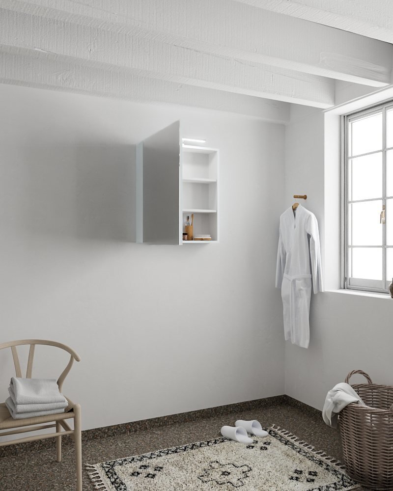 - De spiegelkast biedt voldoende ruimte voor uw toiletartikelen