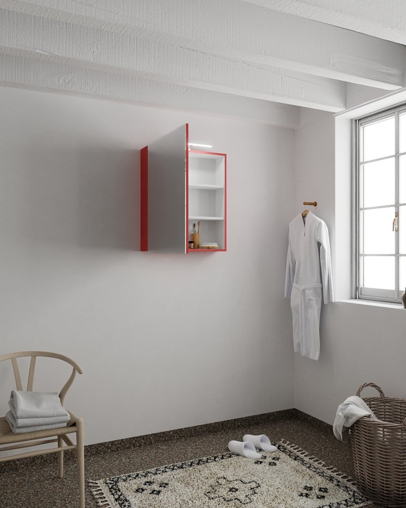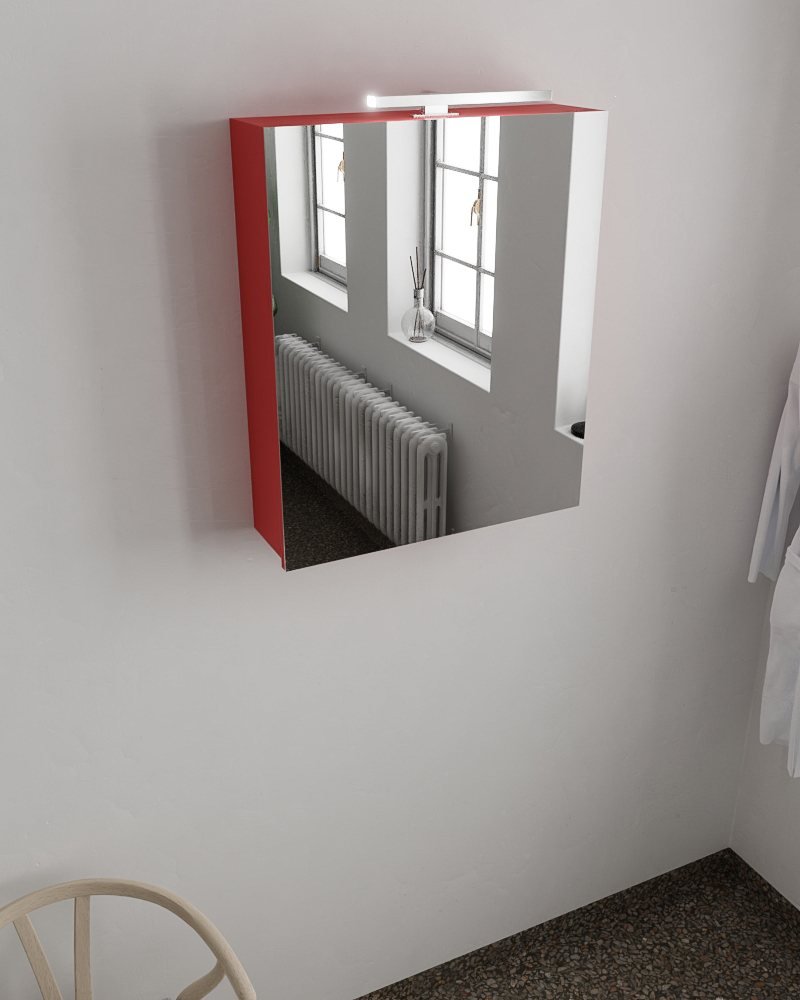 - Maak een statement met deze opvallende vuurrode spiegelkast van Mondiaz