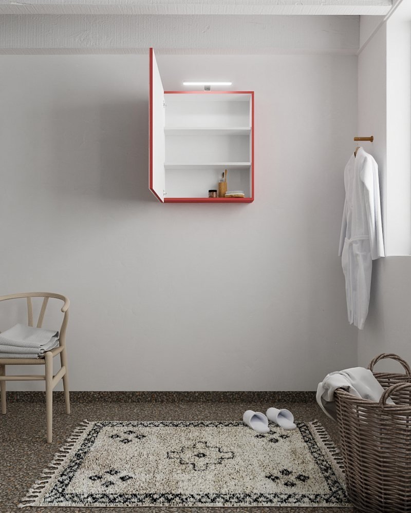 De opvallende vuurrode kleur geeft de kast een uniek en stijlvol karakter. Met deze spiegelkast maak je een statement en creëer je een badkamer die echt opvalt.
