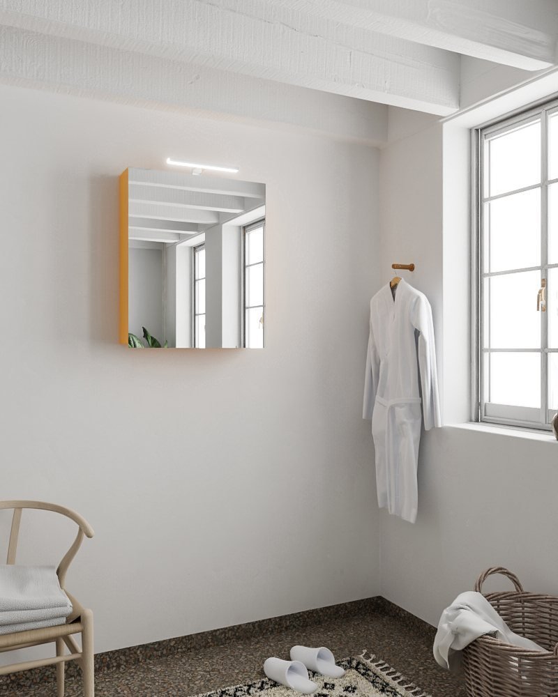 De unieke ocher (geel) kleur voegt een vrolijke en levendige toets toe aan uw badkamerinterieur. Gecombineerd met het strakke en moderne design van de Cubb spiegelkast, creëert u een eigentijdse en trendy look in uw badkamer.
