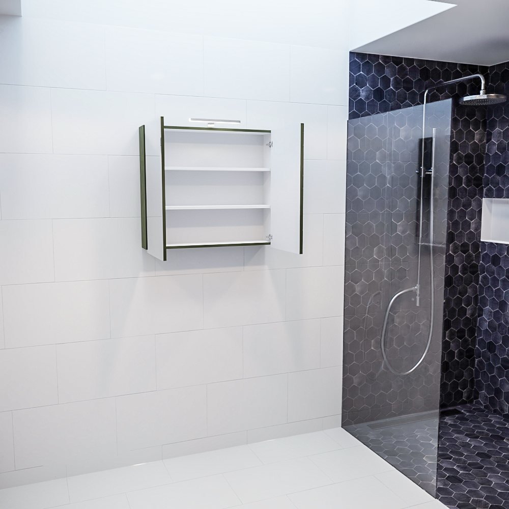 - De unieke legergroene kleur onderscheidt deze spiegelkast van traditionele witte of houten kasten