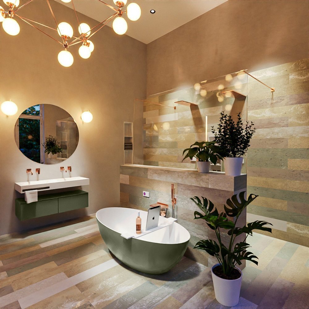 - De army groene en matte witte afwerking voegt een vleugje moderniteit toe aan uw badkamer