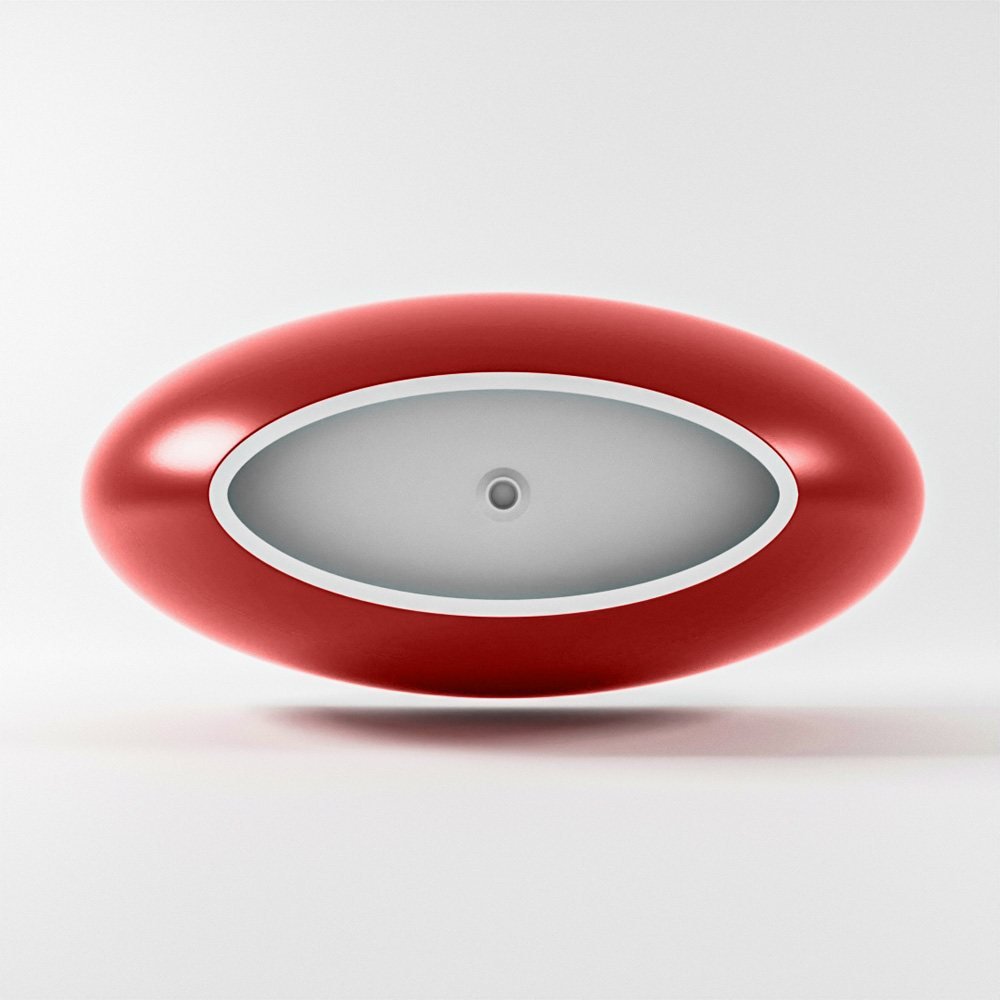 De buitenkant van het bad is afgewerkt in een opvallende vuurrode kleur, die onmiddellijk de aandacht trekt en een levendig accent toevoegt aan je badkamer. Dit wordt prachtig gecombineerd met het matte witte interieur, wat zorgt voor een strakke en moderne uitstraling.