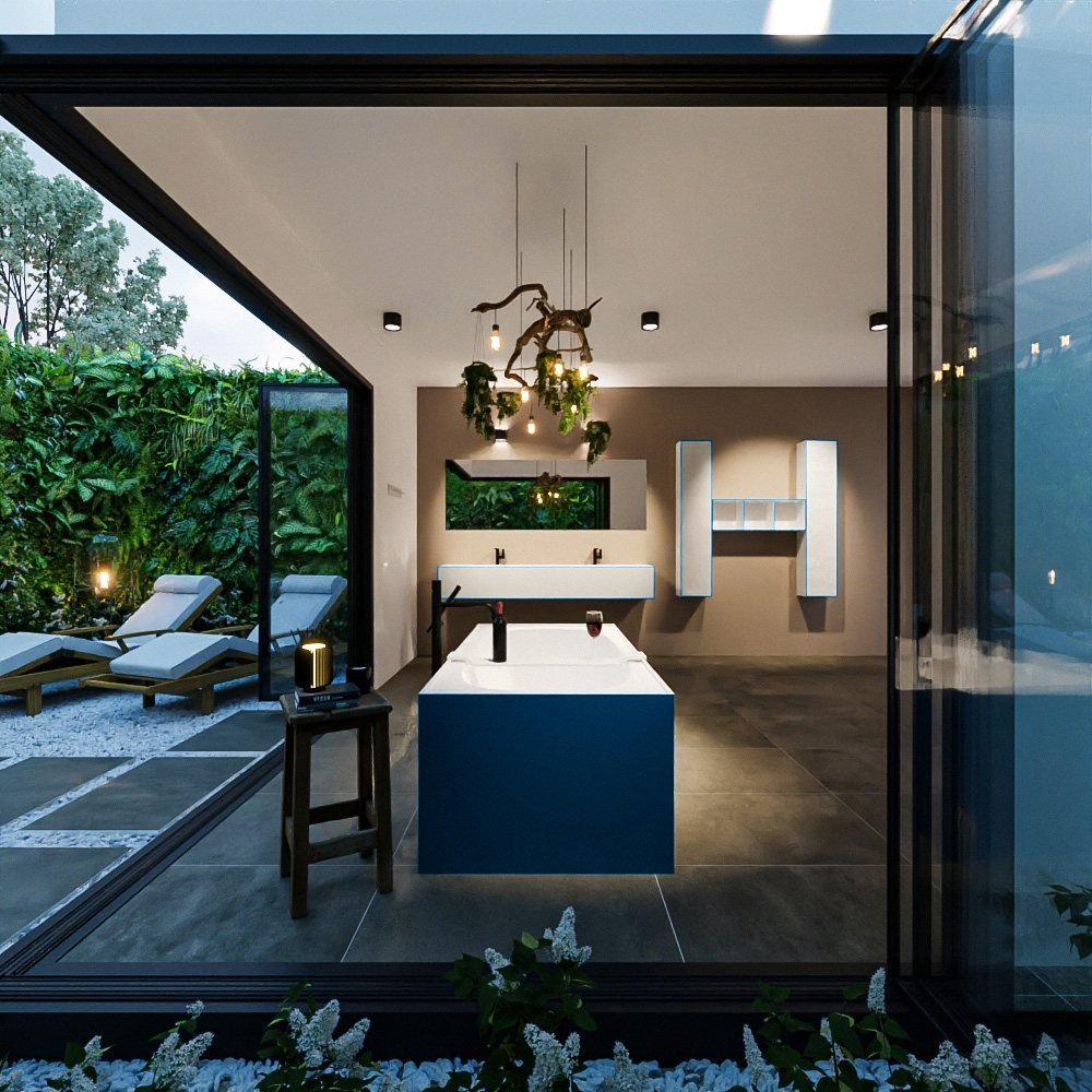 - De unieke kleurencombinatie van blauw en mat wit voegt een vleugje elegantie toe aan uw badkamerinterieur.