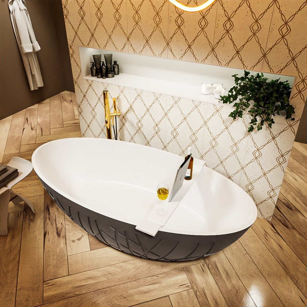 Dit bad is vervaardigd met materialen van de hoogste kwaliteit om ervoor te zorgen dat het jarenlang meegaat. De donkergrijze en matte witte afwerking is niet alleen stijlvol, maar ook duurzaam en gemakkelijk te onderhouden. Het bad is eenvoudig te installeren en biedt een lange levensduur, waardoor het een uitstekende investering is voor uw huis.