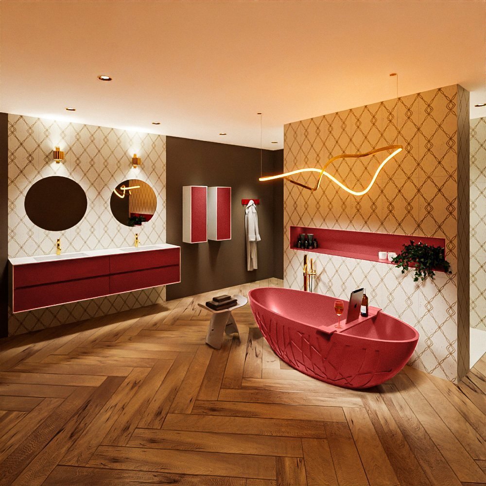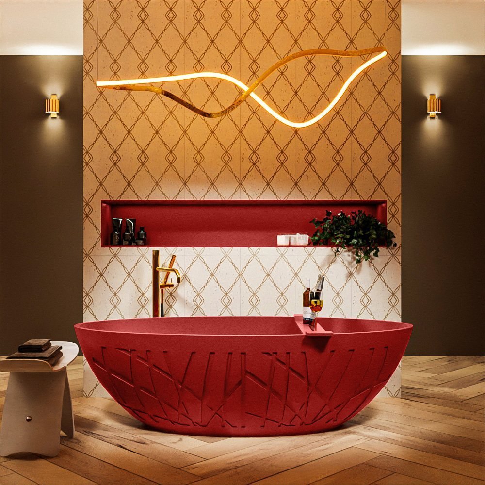 Dus als u op zoek bent naar een manier om uw badkamer te upgraden, kies dan voor dit vrijstaande rode bad. Het zal niet alleen dienen als een comfortabele plek om te ontspannen, maar ook als een opvallend designelement dat uw ruimte transformeert.