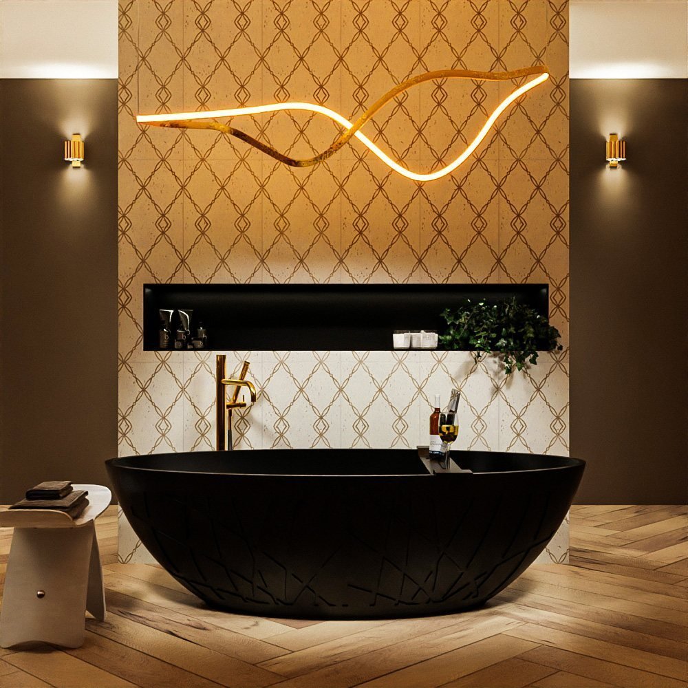 - Creëer een stijlvolle statement in uw badkamer met deze unieke matzwarte vrijstaande badkuip