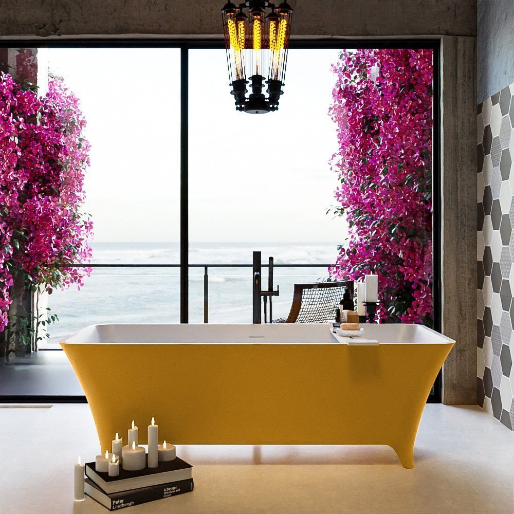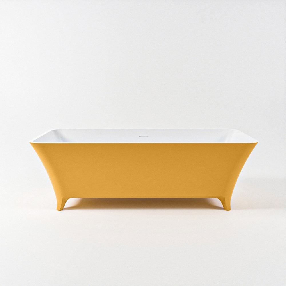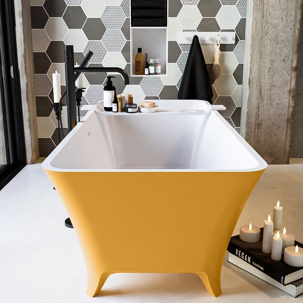 Het bad is uitgevoerd in een unieke ocher (geel) en talc (mat wit) kleurcombinatie. Deze kleurencombinatie voegt een vleugje moderniteit toe aan uw badkamer en maakt van uw bad een stijlvol middelpunt.