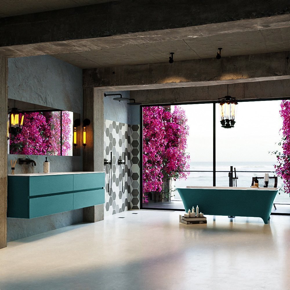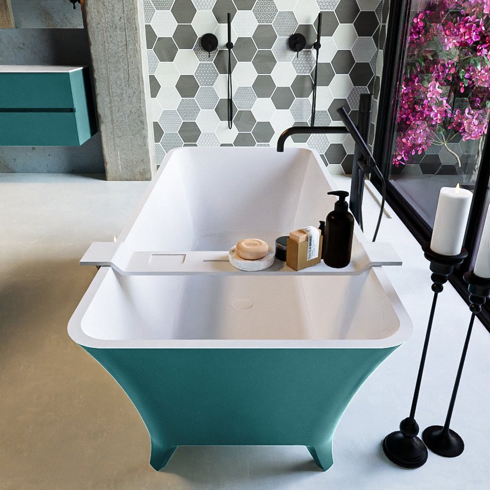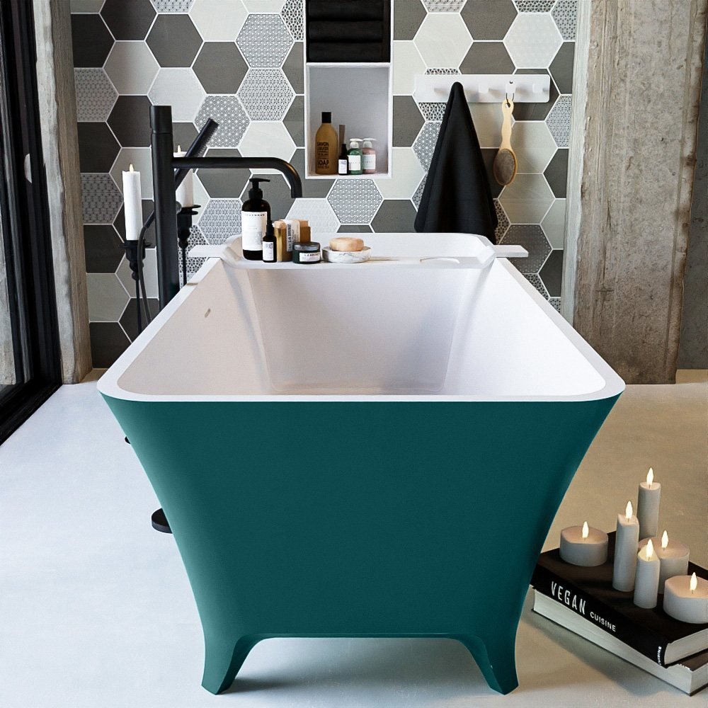 Als u op zoek bent naar een opvallend middelpunt voor uw badkamer, dan is dit vrijstaande bad van Mondiaz de perfecte keuze. Met zijn unieke jade groene en matte witte afwerking voegt dit bad een vleugje kleur en elegantie toe aan uw ruimte.