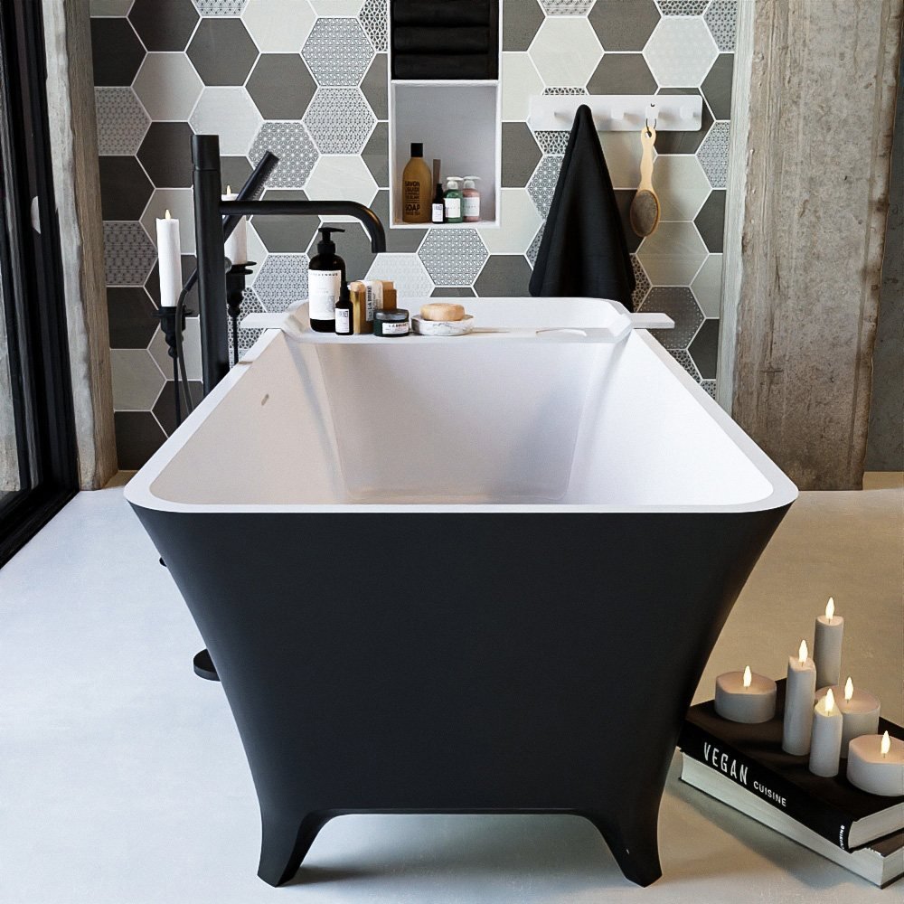 Geef uw badkamer een moderne touch met het urban mat zwarte en talc mat witte vrijstaande bad van de gerenommeerde fabrikant Mondiaz. Dit bad, met zijn strakke lijnen en eigentijds design, is de perfecte aanvulling op elke moderne badkamer.