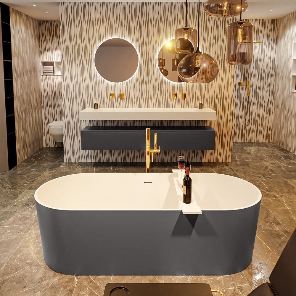Mondiaz Vrijstaand bad Noble – 180x75cm – dark grey (donker grijs)/ talc (mat wit) – BK75341007