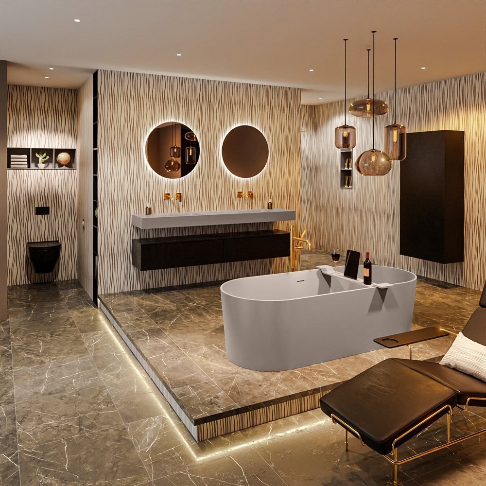 • Het rookkleurige bad past perfect in verschillende badkamerstijlen
