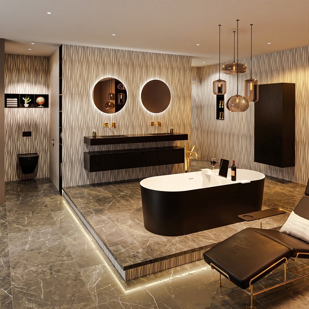 Dit bad heeft een matzwarte en matwitte afwerking die perfect past bij elke moderne badkamerinrichting. Het vrijstaande ontwerp voegt een gevoel van luxe toe, terwijl de royale afmetingen van 180x75cm voldoende ruimte bieden om te ontspannen.