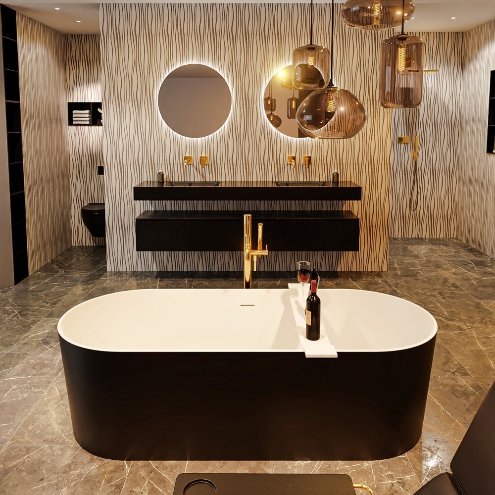 Mondiaz Vrijstaand bad Noble – 180x75cm – urban (mat zwart)/ talc (mat wit) – BK75341001